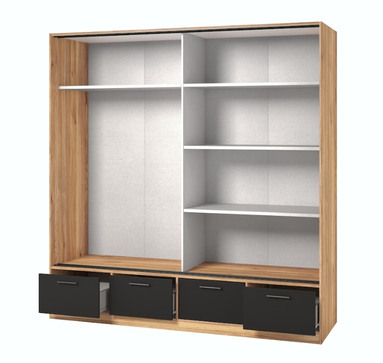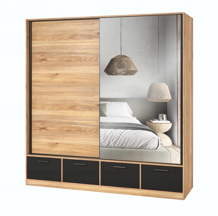 Beta – Szafa 2D4S z Lustrem Dąb, Czarny mat drzwi przesuwne garderoba