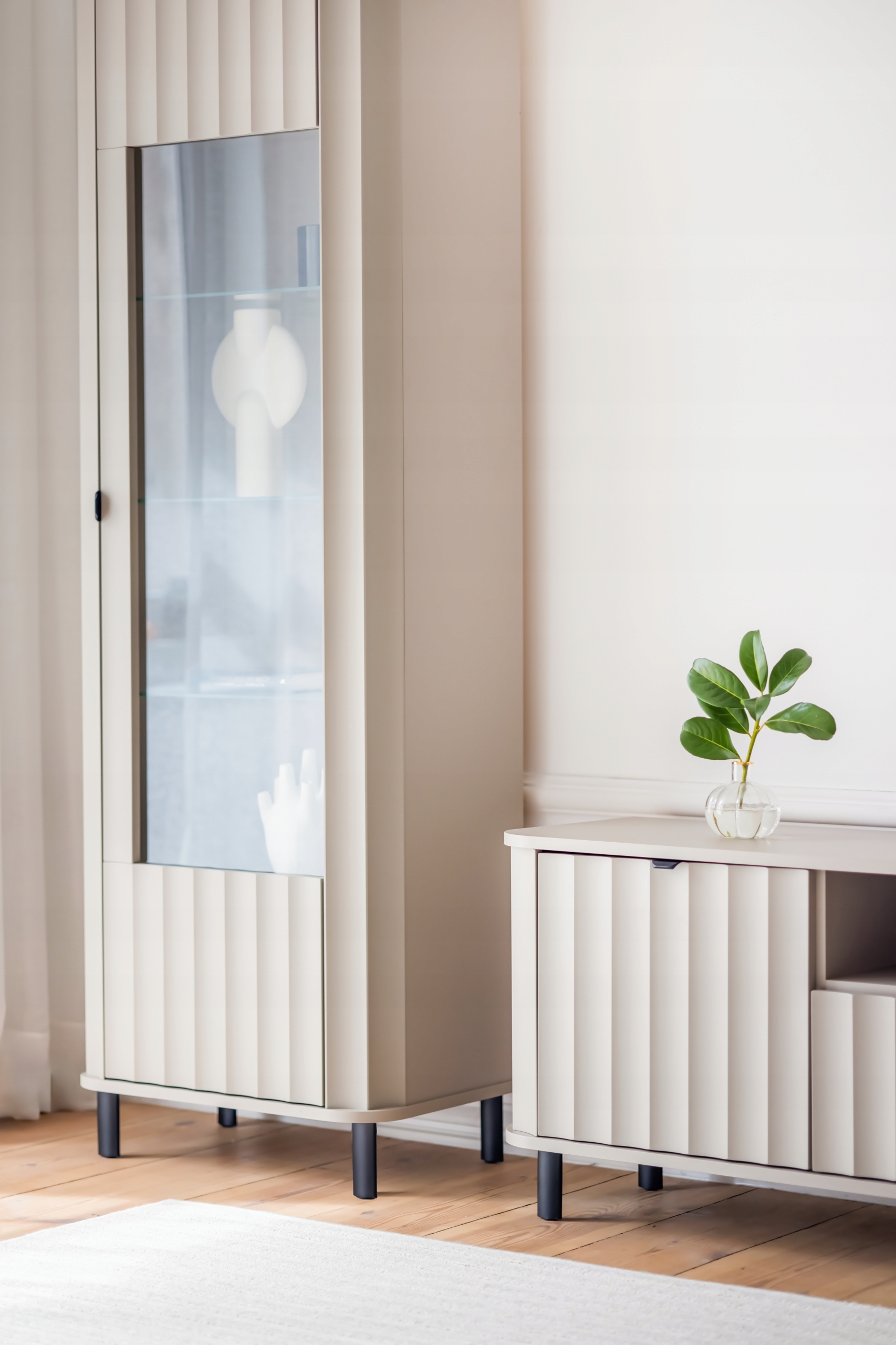 Novado to kolekcja mebli do salonu, która łączy w sobie elegancję i funkcjonalność. Jej wyróżnikiem są frezowane, foliowane fronty z MDF-u, które nadają wnętrzu wyjątkowego charakteru. Dzięki dwóm ponadczasowym kolorom – klasycznej bieli i modnemu Clay Gray – Novado wpisuje się w różne style aranżacyjne, od nowoczesnych po minimalistyczne.