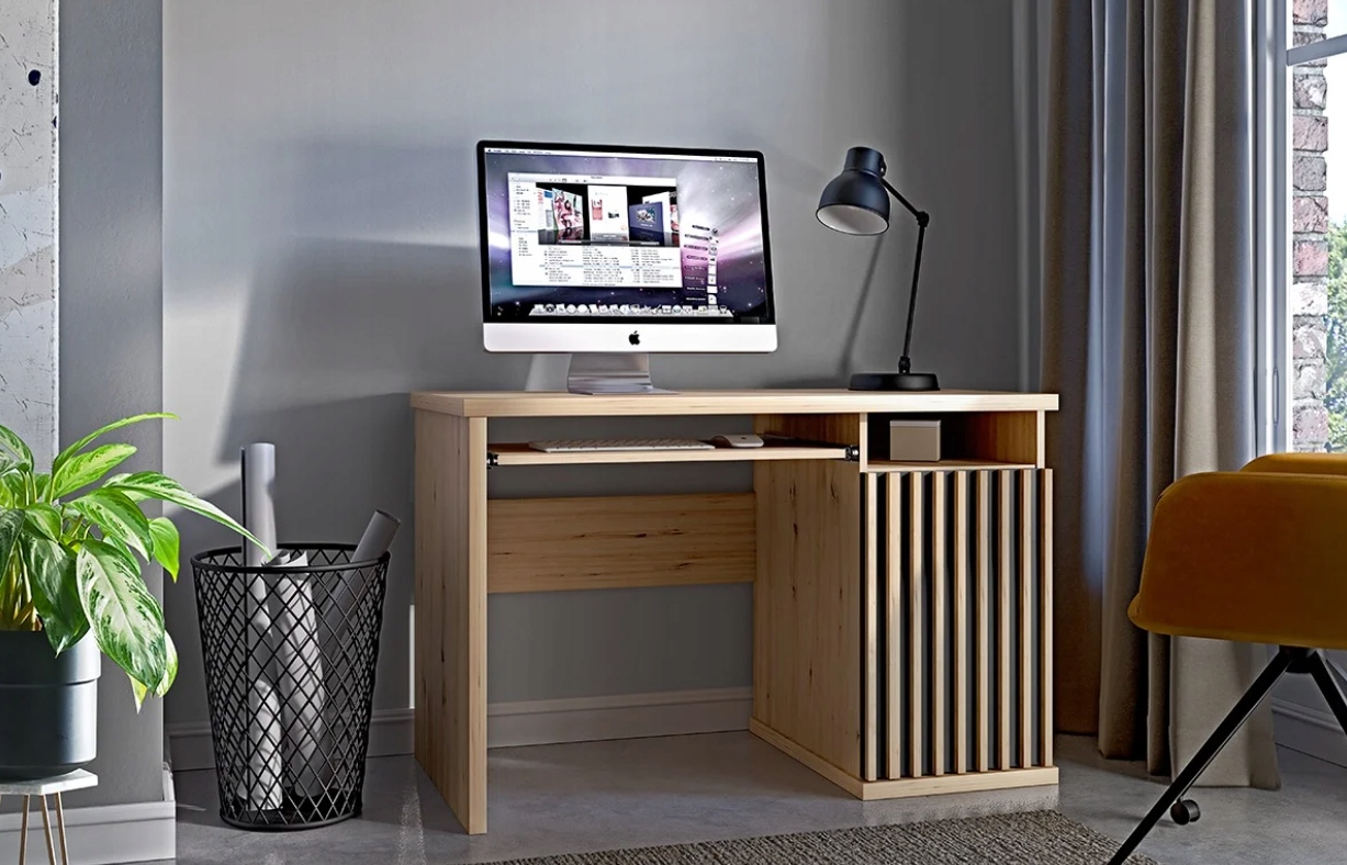 Biurko z lamelami i wysuwaną półką na klawiaturę