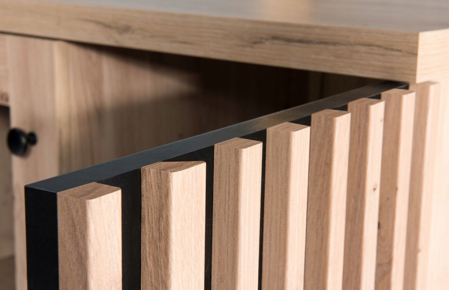 - czarna płyta – laminowana płyta meblowa (drzwi z lamelami)