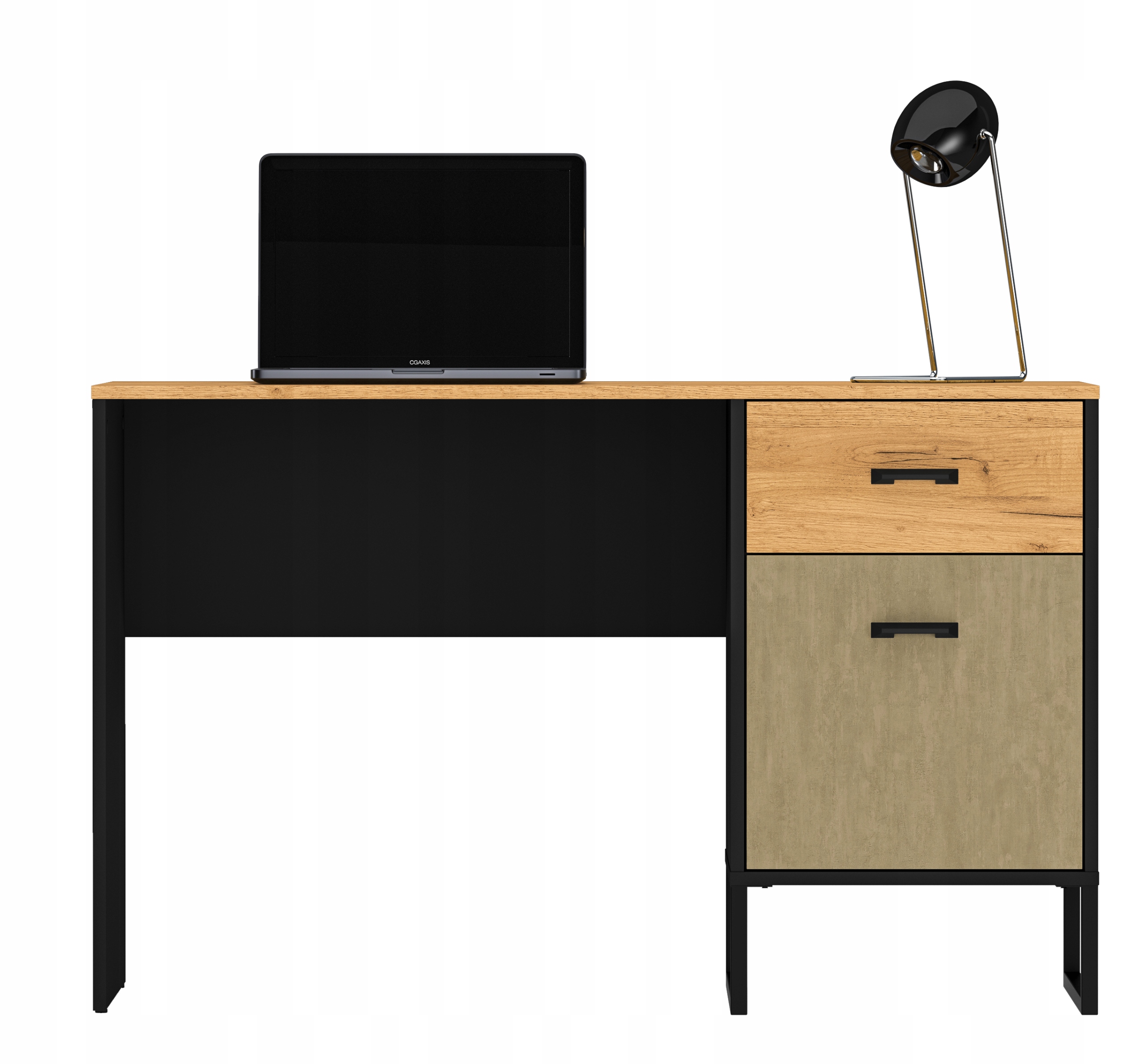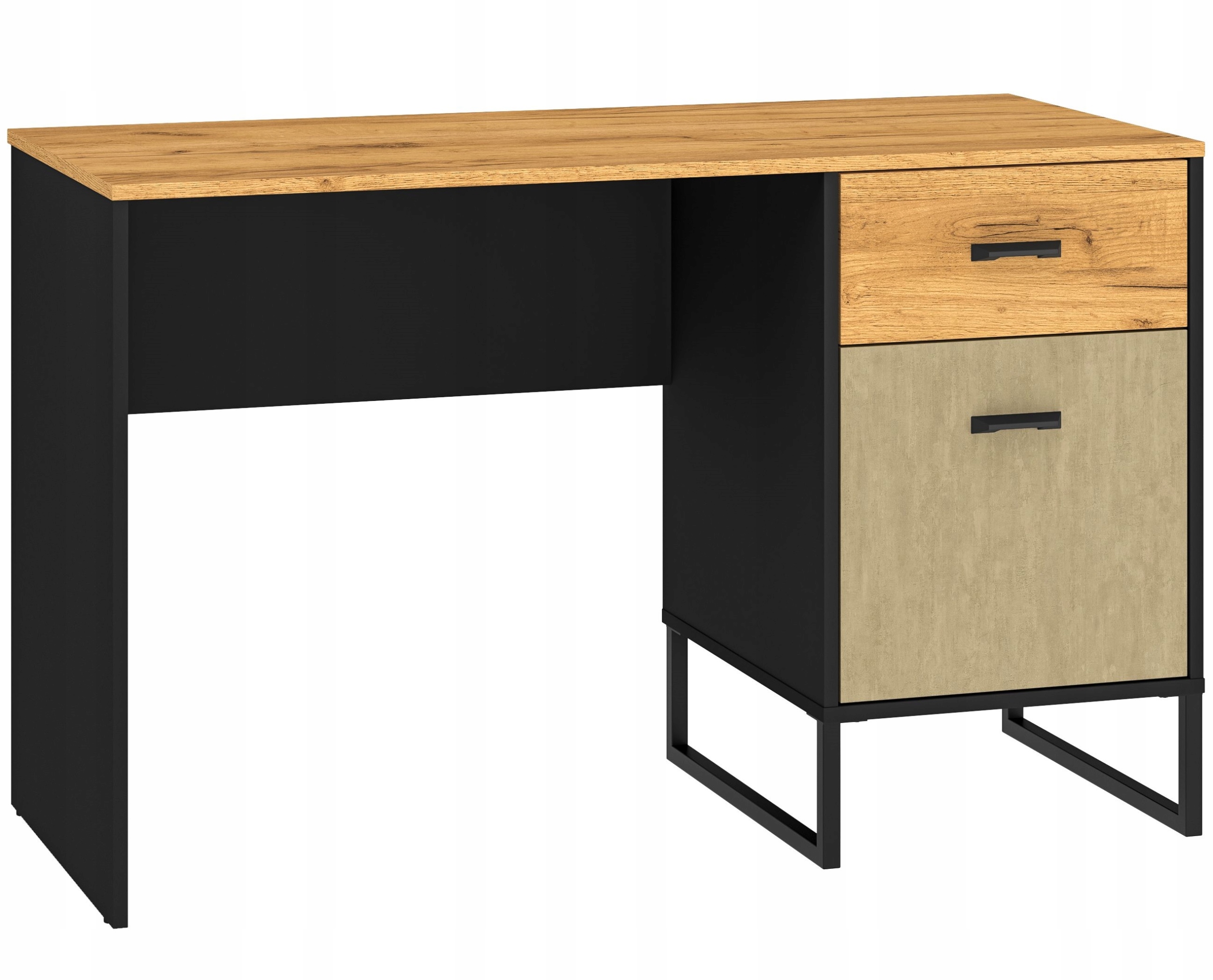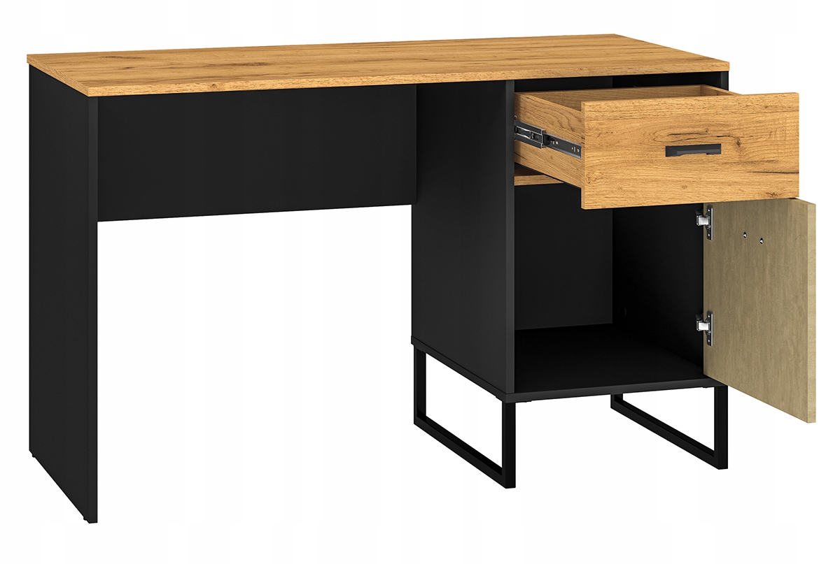 • Dodatkowe Przechowywanie: Biurko wyposażone jest w pojemną szufladę oraz część zamkniętą za drzwiczkami, co pozwala utrzymać idealny porządek na blacie.
