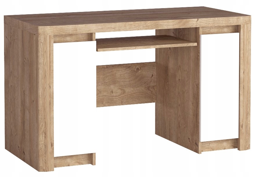 Biurko z nowej kolekcji LIVINIO. Solidne, bardzo wytrzymałe. Posiada dwie szafy, w których znajdziemy półki. Jest też miejsce na wysunięcie klawiatury, czy też podręczne dokumenty i coś do pisania, jeśli postawimy laptopa na blacie. Drzwi szaf posiadają zawiasy z cichym domykiem. Biała płyta w połysku na frontach jest czymś niespotykanym. Taki mebel wzbogaci pokój i umili w nim pracę. Biurko może służyć również jako toaletka do sypialni. Wyobraźcie sobie ciepłe, stylowe pomieszczenie, w którym umieścimy toaletkę, a nad nią powiesimy lustro z tej samej kolekcji. Taki zestaw będzie świetnym rozwiązaniem w przypadku szykowania się do wyjścia wieczorem, czy nakładania kremu na dzień.