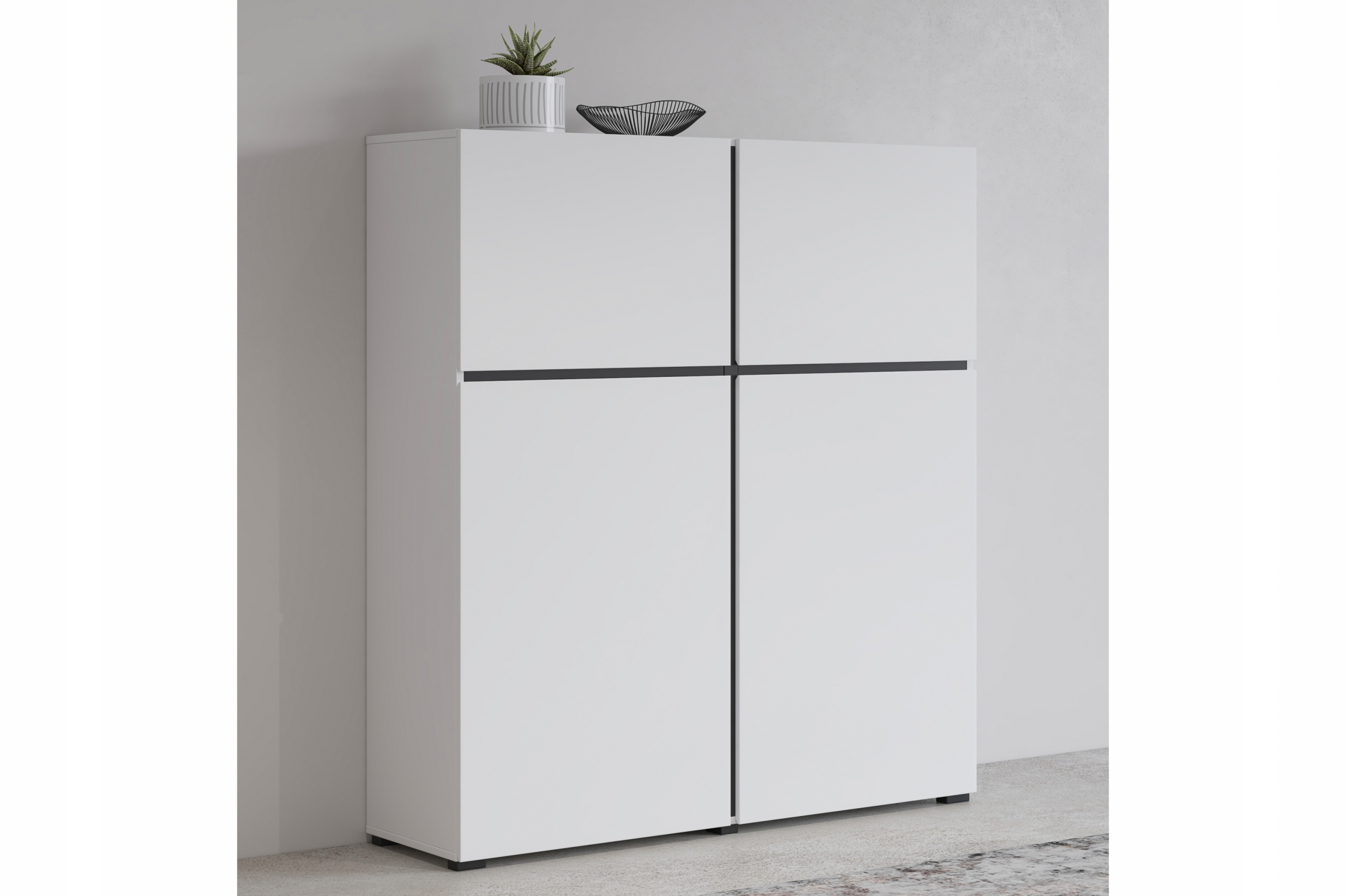 Cross – Komoda Wysoka 4-drzwiowa Biała półki nowoczesna Modern white