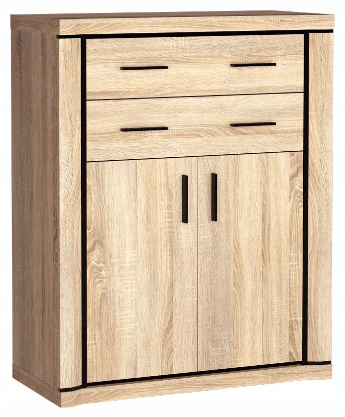 Kolekcja mebli DALLAS to doskonałe połączenie nowoczesnego designufunkcjonalności i trwałości. Jej wyjątkowym atutem jest piękny kolor dąb Sonoma, który nadaje wnętrzom naturalnego uroku i ciepła. Kontrastujące czarne wstawki i uchwyty dodają kolekcji wyrafinowanego charakteru.