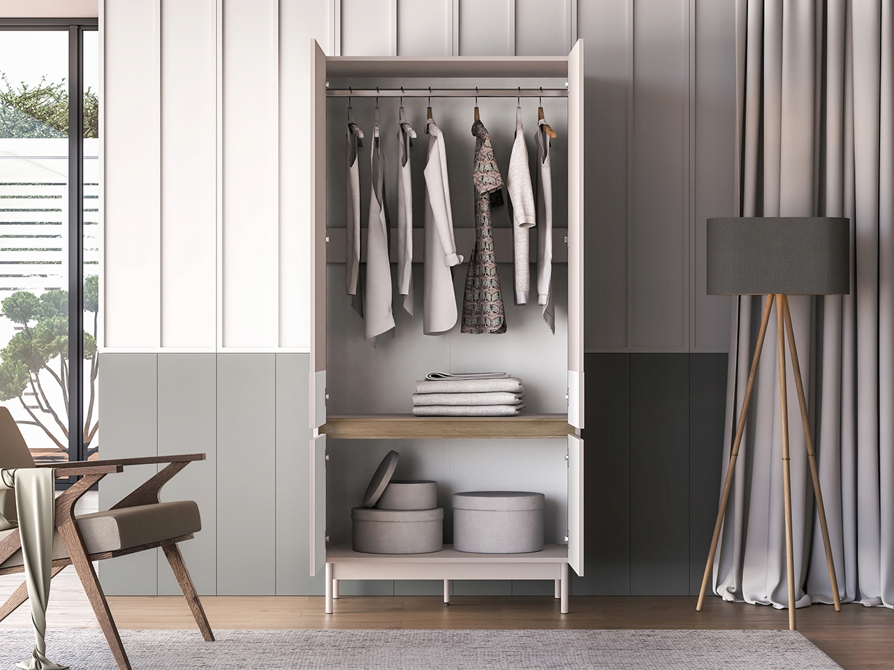 - Przestronne półki i miejsce na drążek ubraniowy zapewniające wygodną organizację odzieży