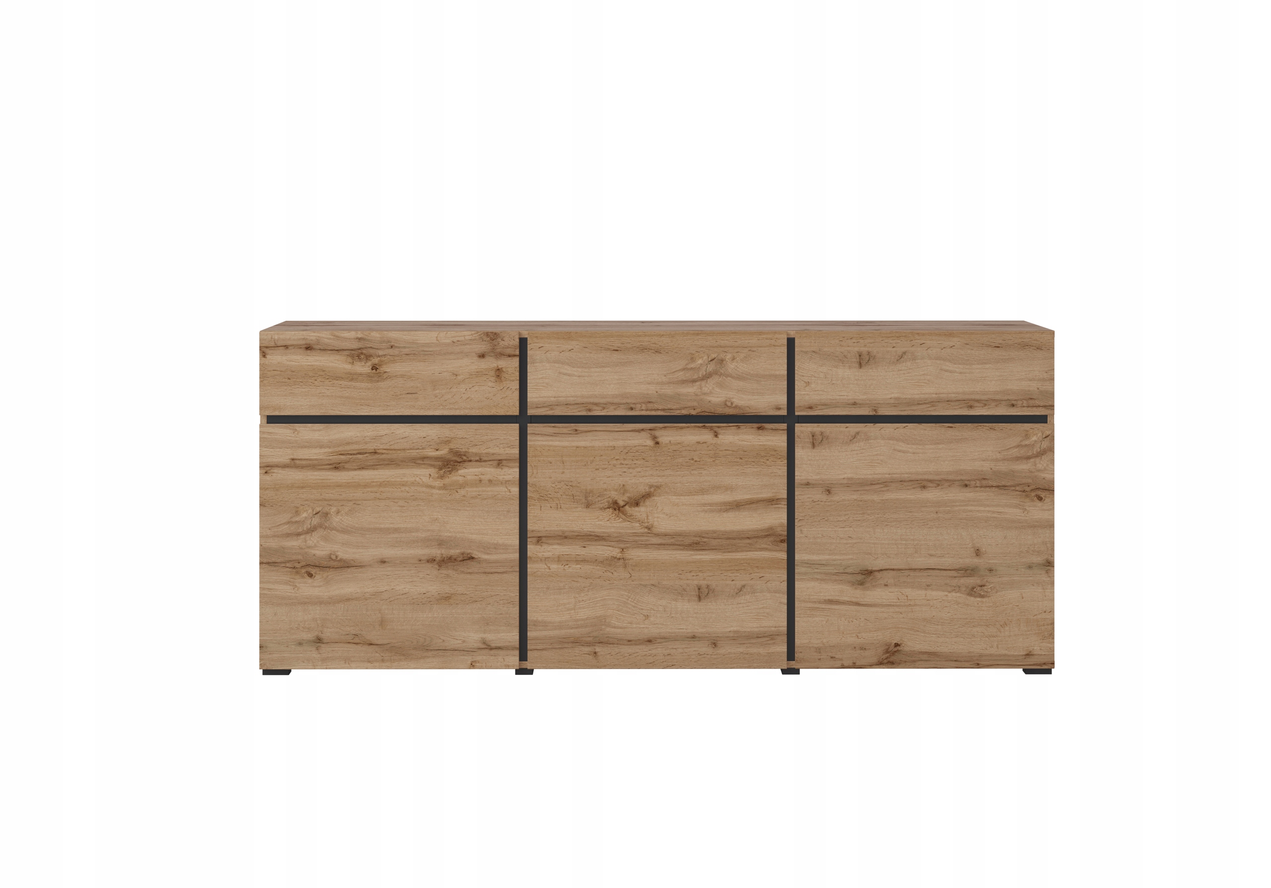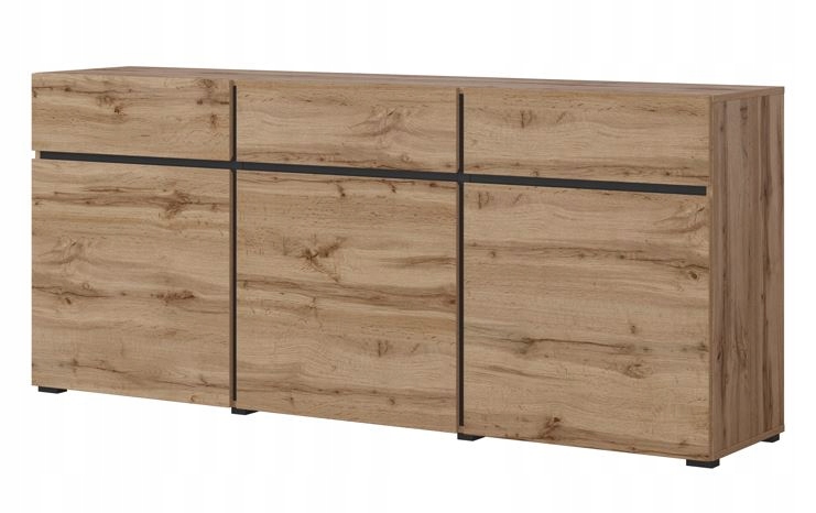 Duża 180 cm Nowoczesna Komoda do Salonu 3 Drzwi 3 Szuflady/Dąb Wotan CROSS
