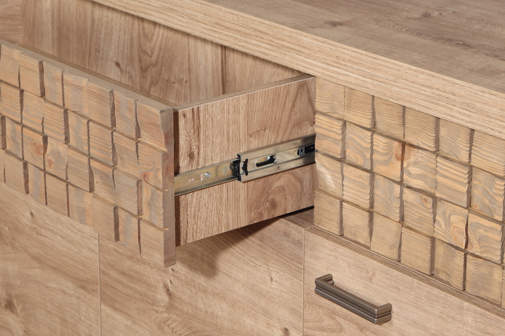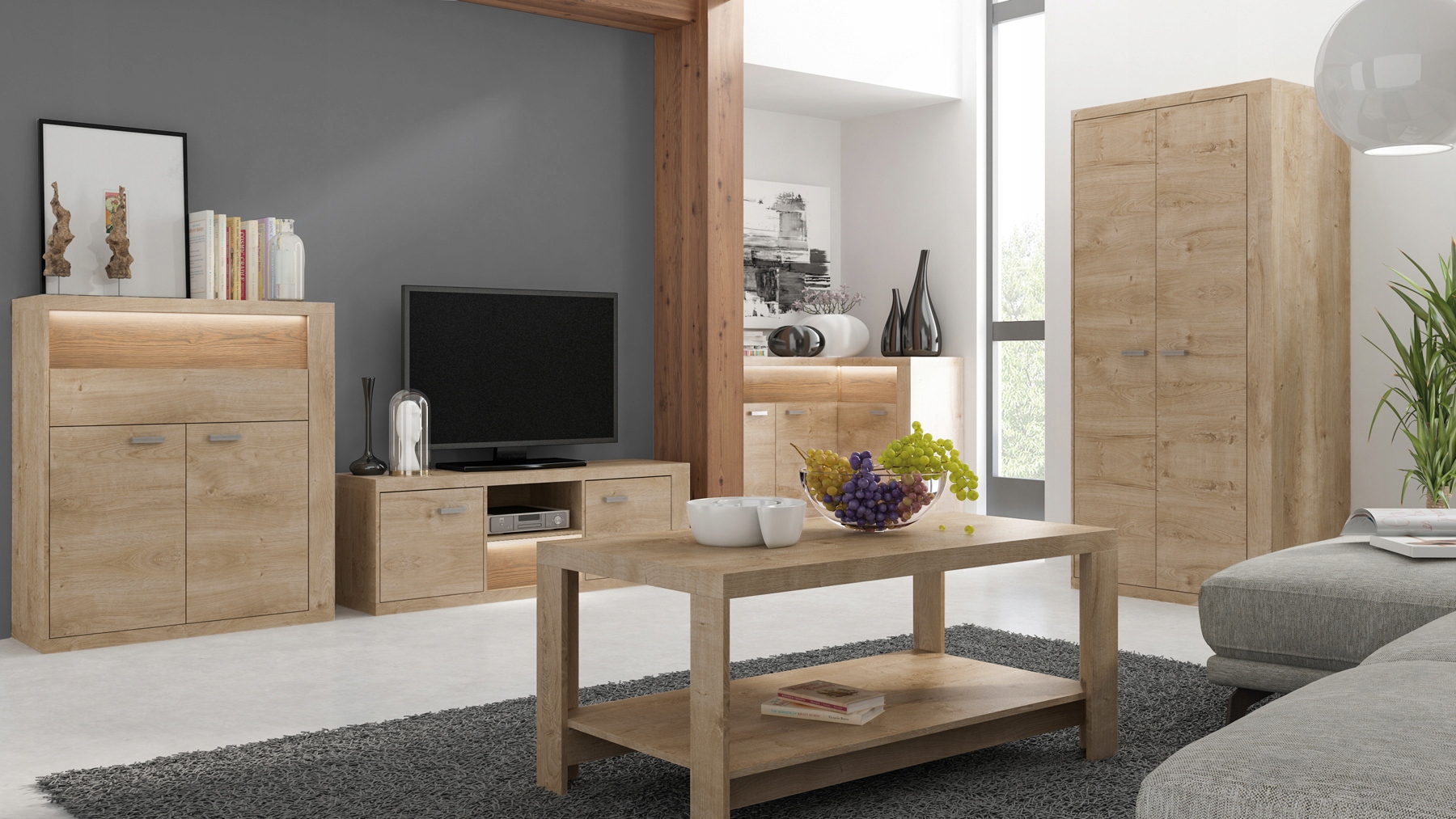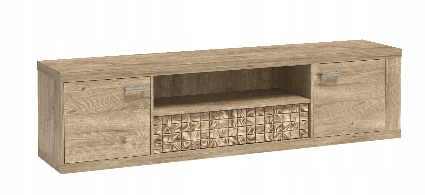 Szafka RTV z kolekcji Natural, która dobrze sprawdzi się w każdym pomieszczeniu. Wyposażona jest w trzy półki, (przy czym dwie są skryte za szafkami), na których można postawić dokumenty, ozdoby czy inne akcesoria. Posiada również szufladę, która dzięki swojej pojemności świetnie sprawdzi się w domu, delikatność jej podkreśla system Push To Open. Konstrukcja jest solidnie wykonana, a metalowe uchwyty są wytrzymałe oraz pięknie wyglądają. Dostępna w jednym wybarwieniu.