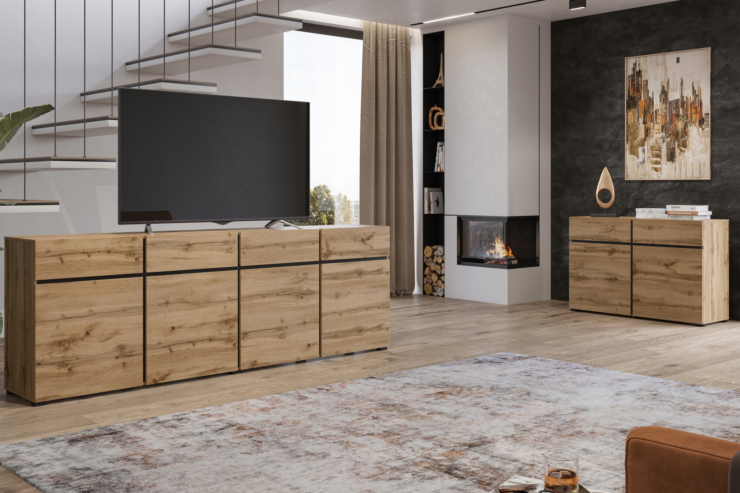 Komoda Cross 25 z szufladami 225 cm – dąb wotan / czarny