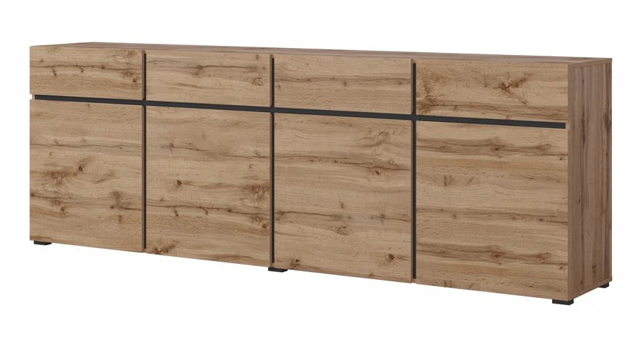 Duża nowoczesna Komoda Helvetia 225 x 40 x 78cm CROSS dą wotan + czarne wst