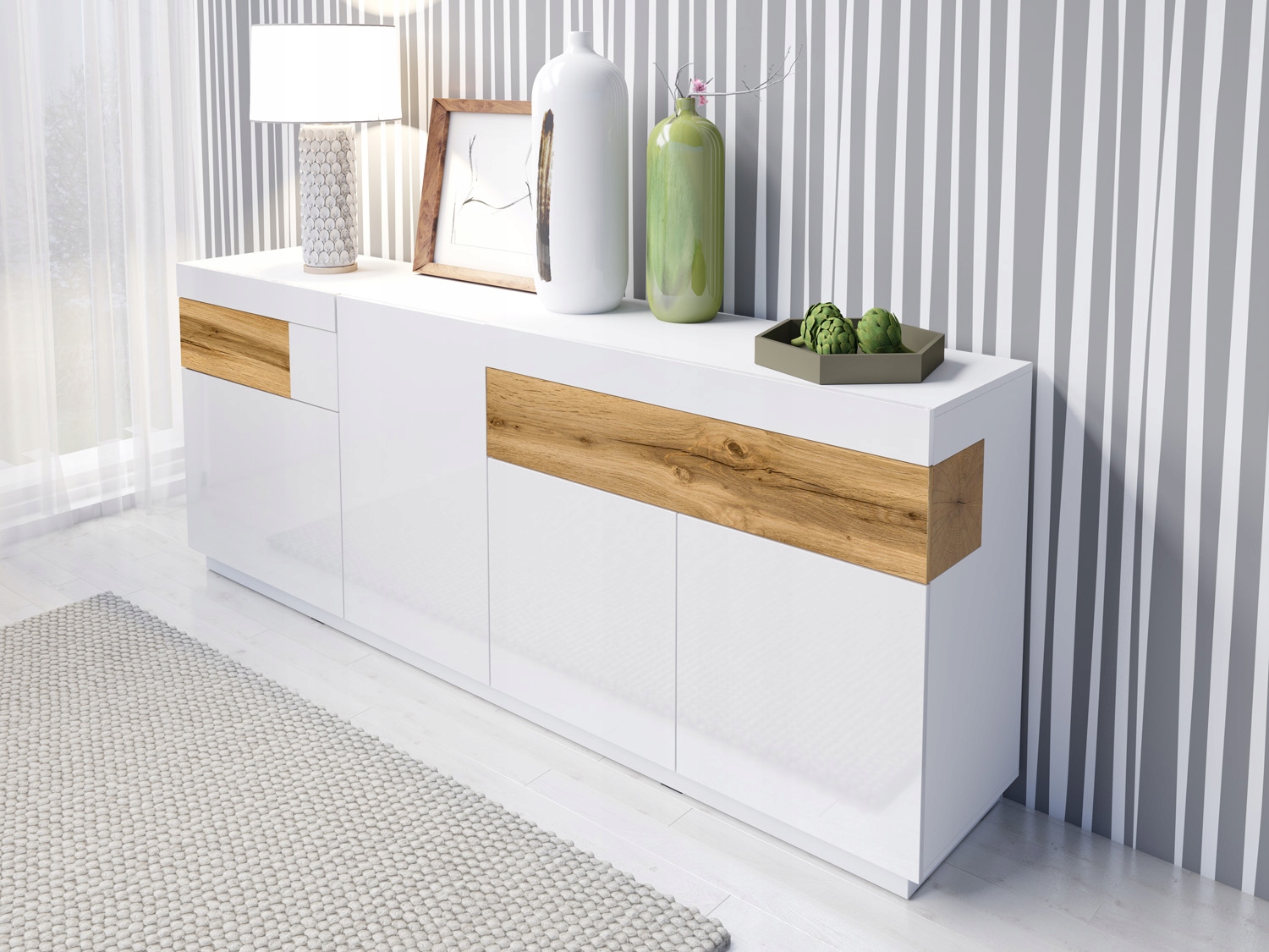 Duża nowoczesna Komoda Helvetia SILKE 219 x 40 x 85cm biały połysk wotan