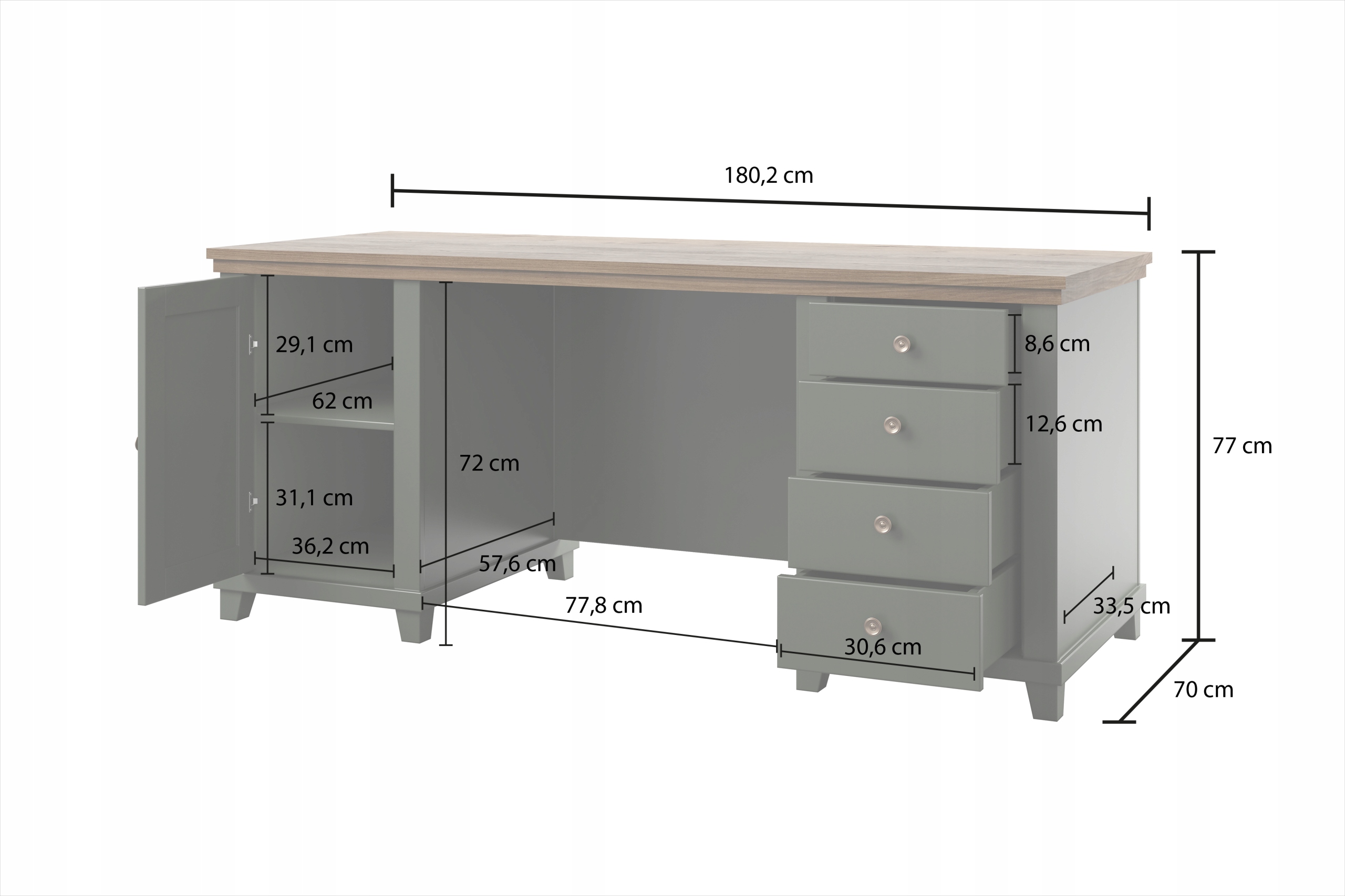 Duże 180 x 70cm masywne biurko EVORA zieleń oliwkowe blat dąb lefkas