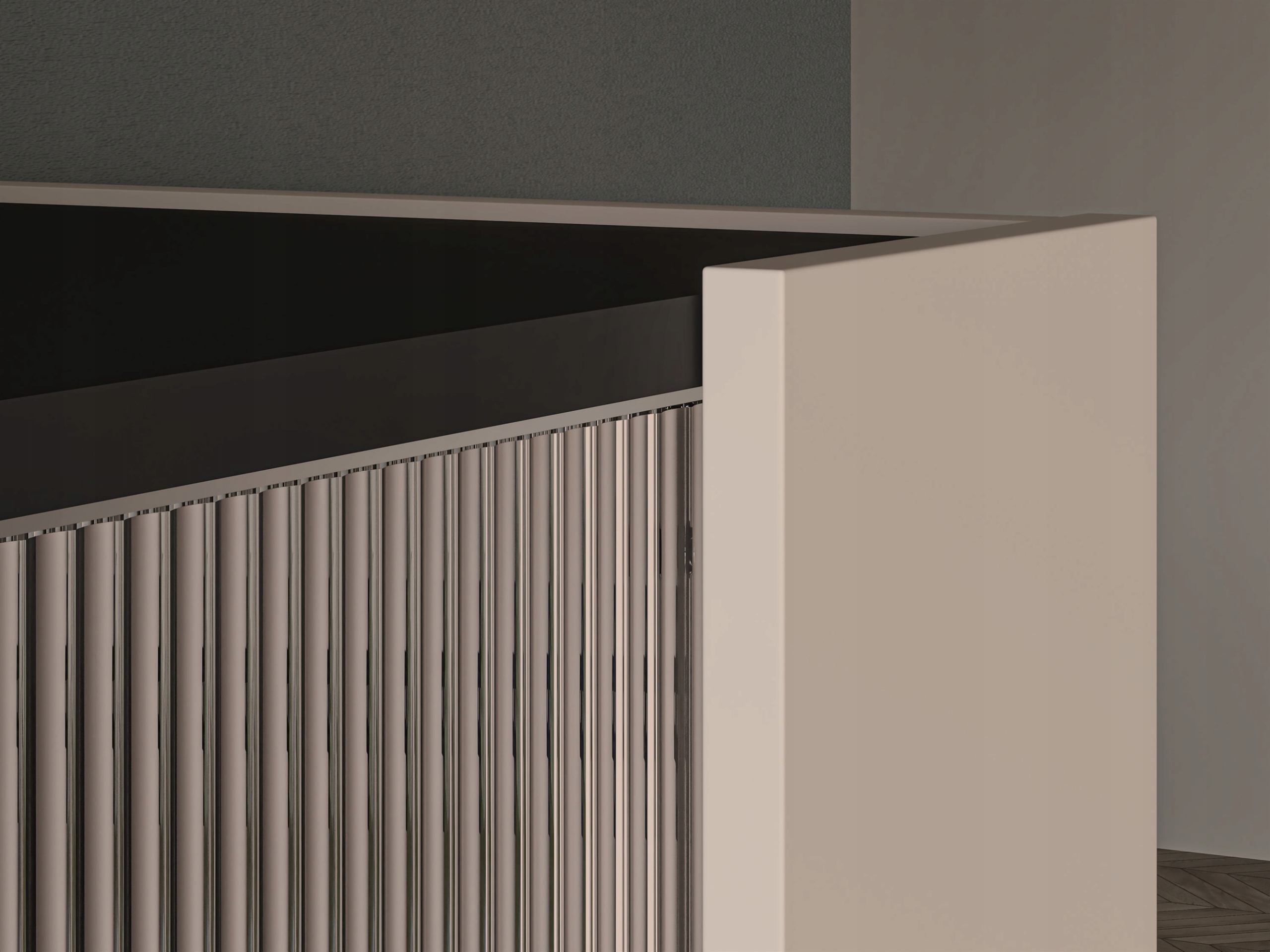 Witryna 2-drzwiowa FRESHION 02 w eleganckim kolorze kaszmiru to idealne połączenie nowoczesności i funkcjonalności. Wykonana z wysokiej jakości płyty laminowanej, z cichym domykaniem oraz szkłem hartowanym, doskonale wpasuje się w każde wnętrze.