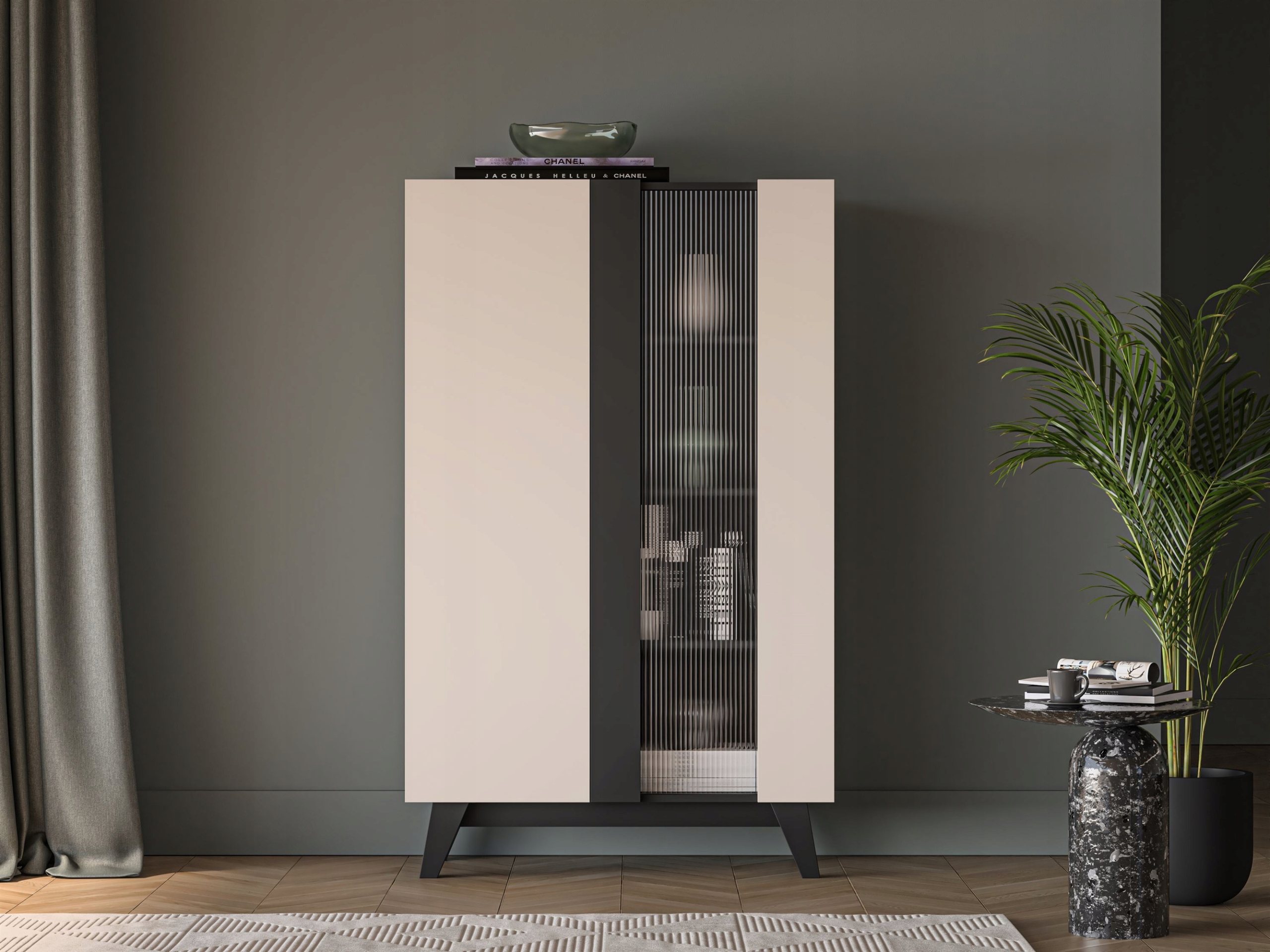 Kaszmirowa Witryna 2-drzwiowa FRESHION 02 Kaszmir Czarny Mat 95 x 155