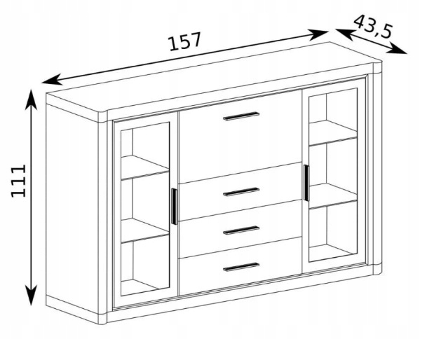 Klasyczna Komoda DALLAS 157 x 43,5 x 111 dąb truflowy witryna masywna
