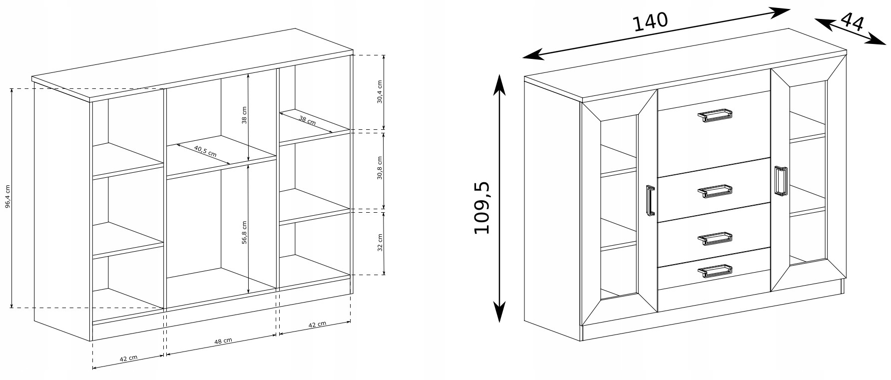 Klasyczna Komoda z barkiem TADEUSZ140 x 44 x 110cm dąb lefkas stylowa PL