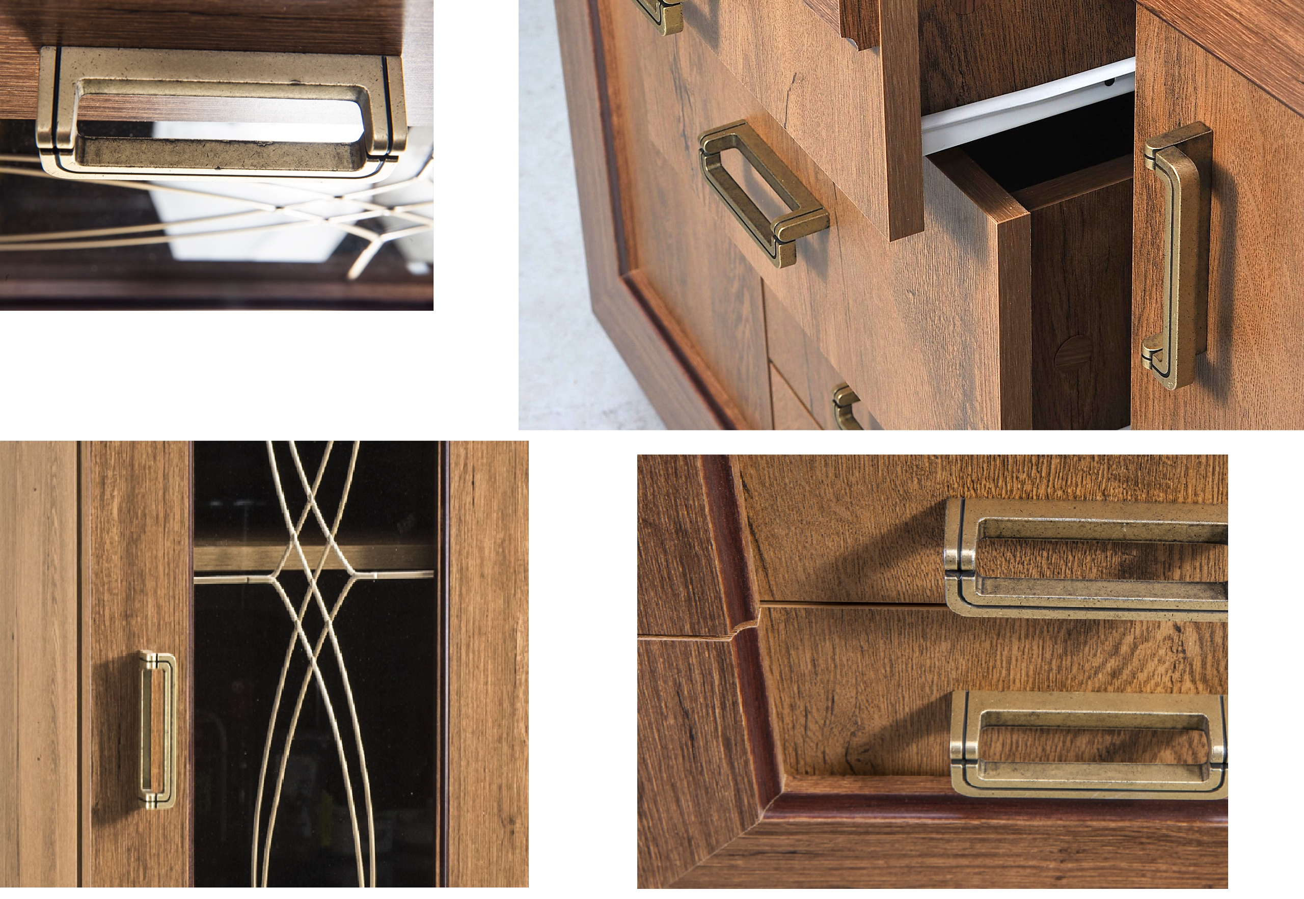 Meble te to połączenie stylu klasycznego z nowoczesnymi elementami, co tworzy niepowtarzalną całość. Kolekcja utrzymana jest w angielskim klimacie – przeszklenia z ozdobnymi ornamentami nadadzą pomieszczeniu przytulnego charakteru. Dzięki bryłom z serii TADEUSZ stworzymy elegancki salon lub sypialnię.
