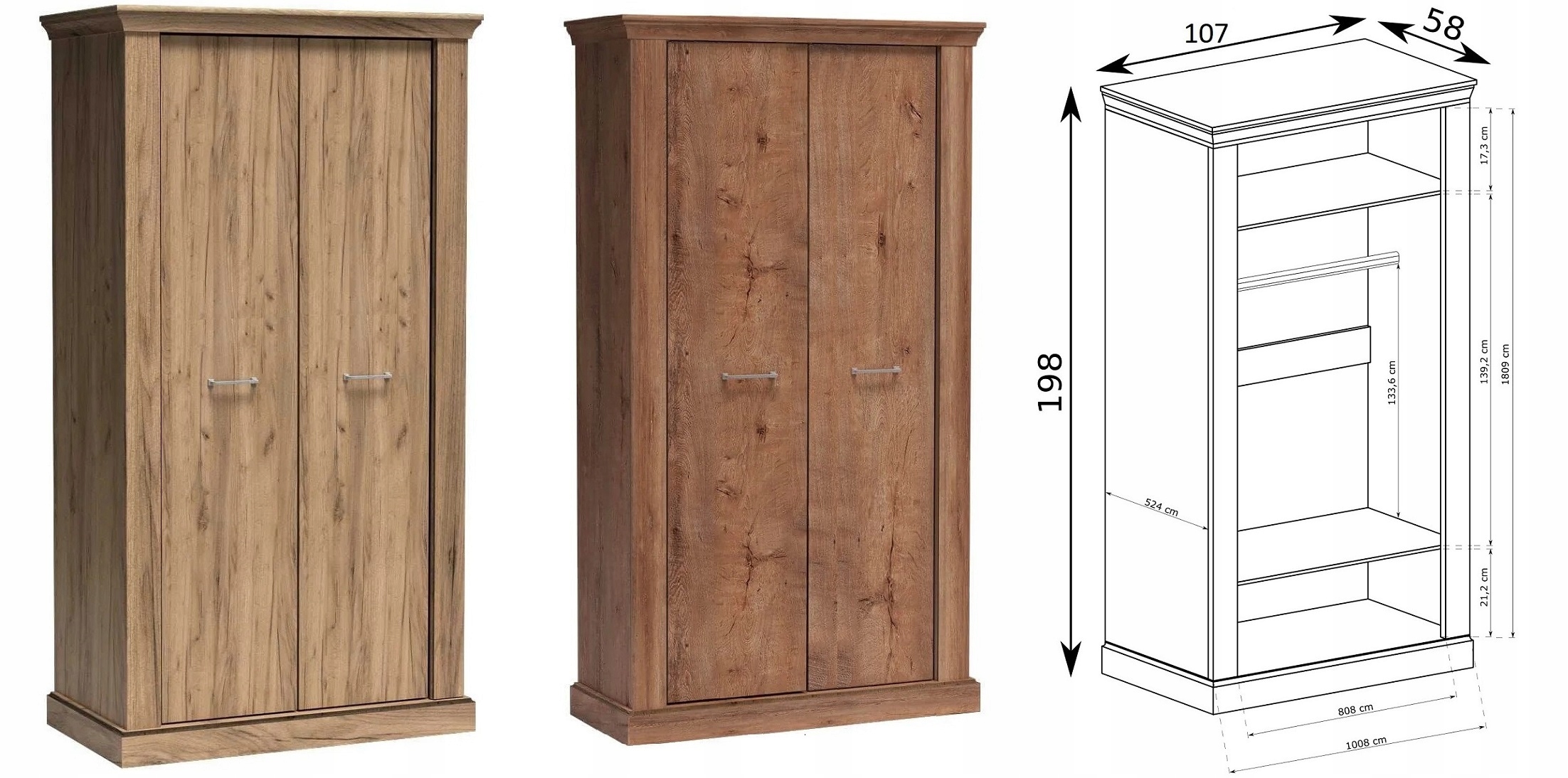 Klasyczna szafa Jarstol Antica 107 x 198 x 58 cm dąb craft złoty produkt PL