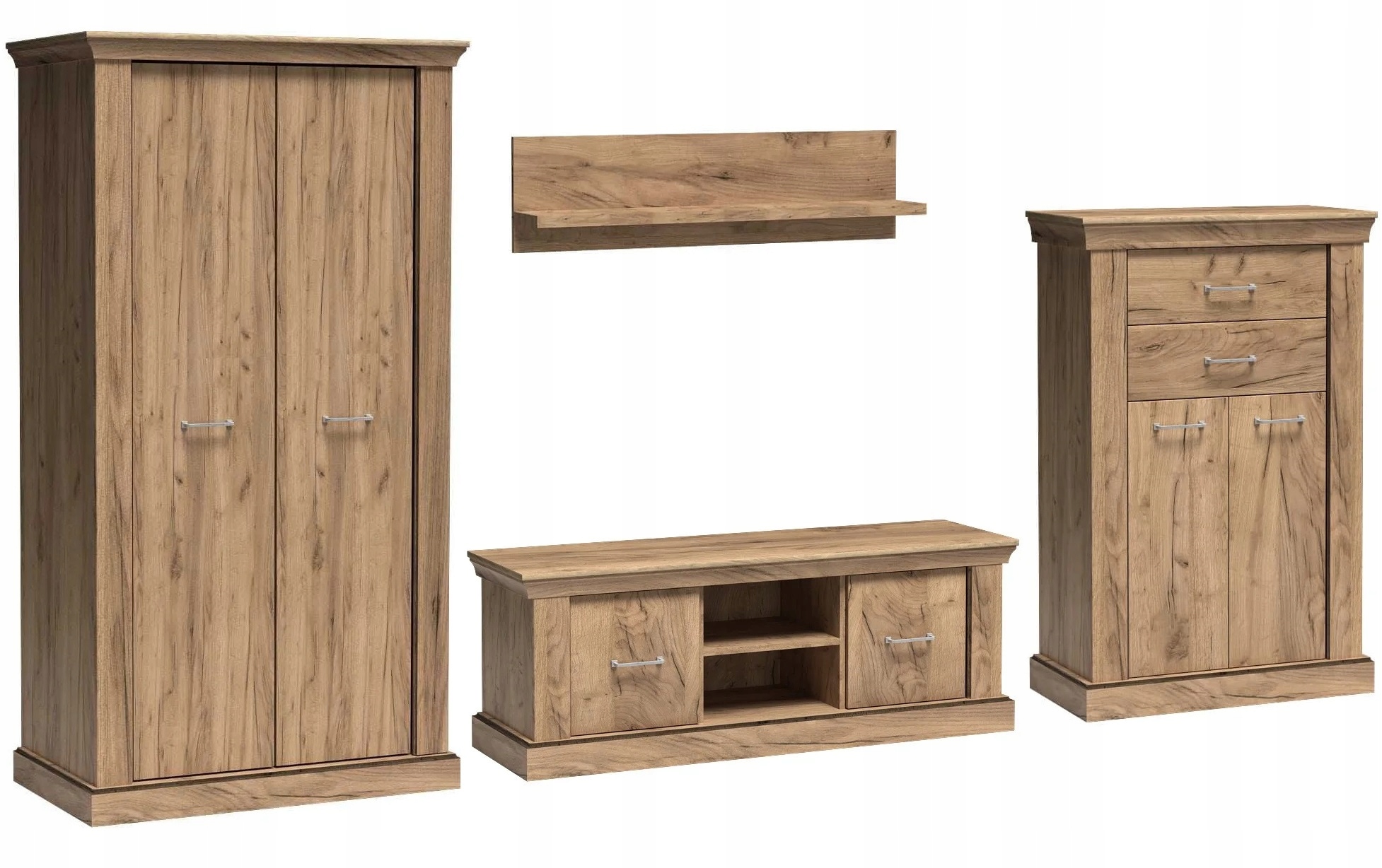 system składa się z szaf, witryn, komód, szafek rtv, ław, półek, łóżka, szafki nocnej