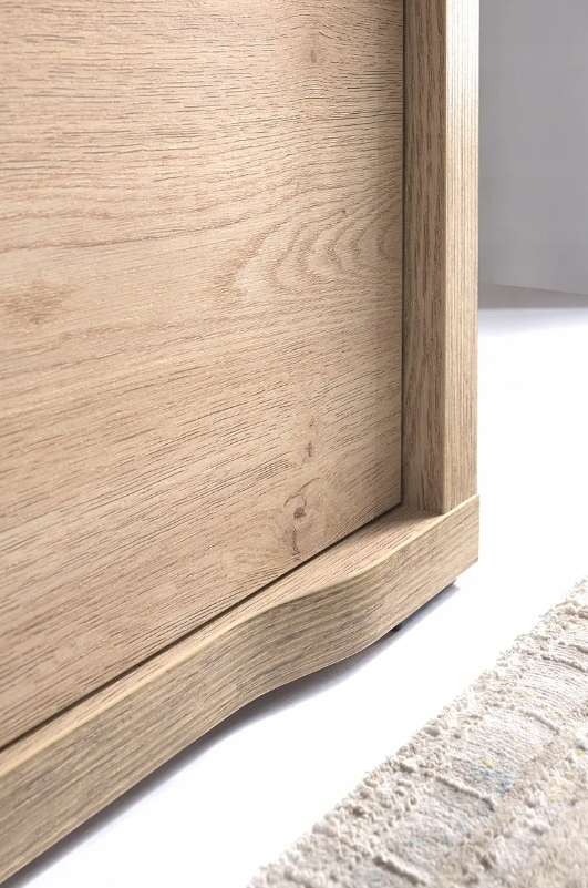 Fronty w kolorze dąb cremona, naturalna struktura drewna oraz delikatnie zaokrąglone detale wpisują się w klasyczną stylistykę kolekcji GRANDE, dodając wnętrzu ciepła i harmonii.
