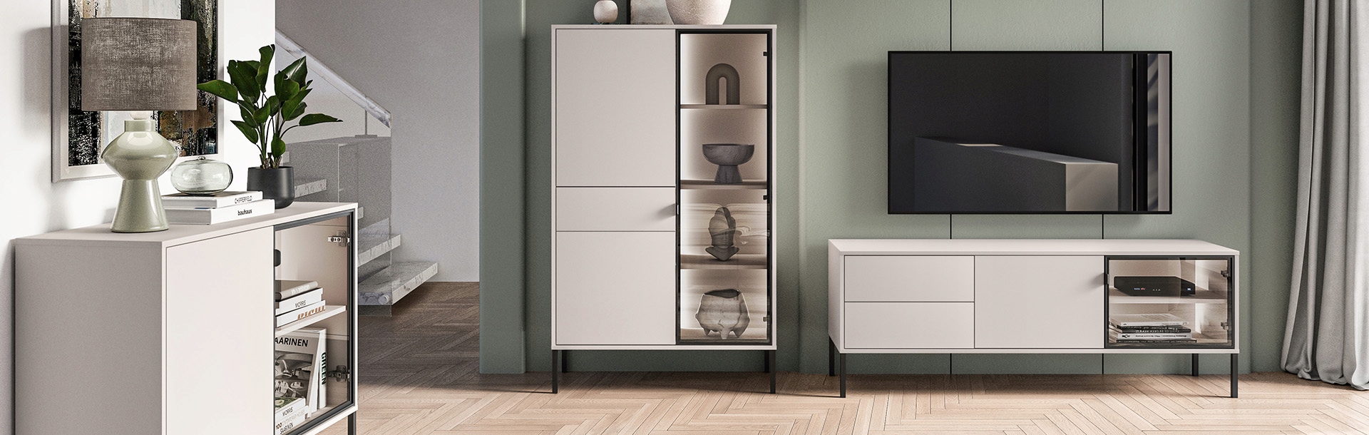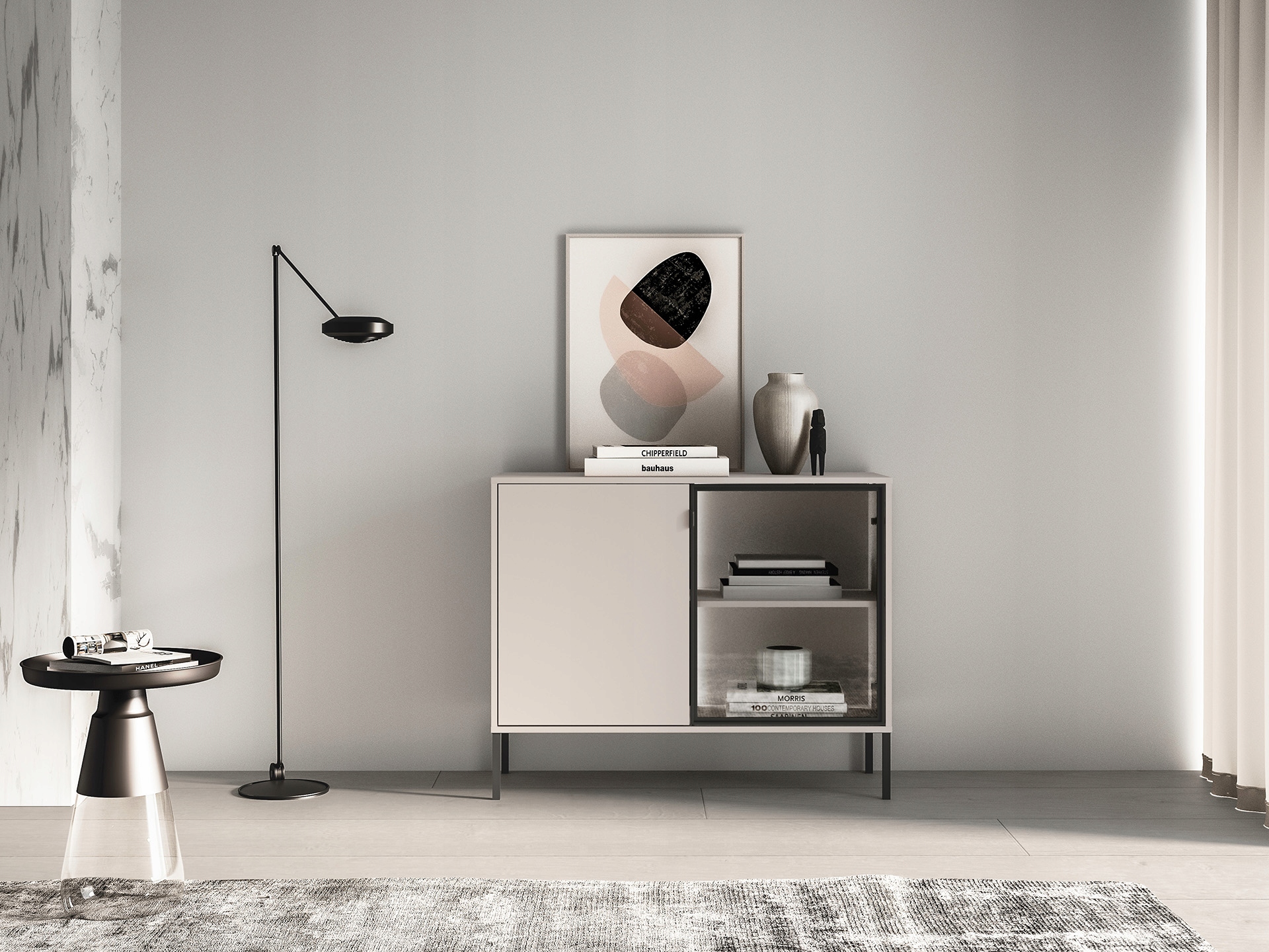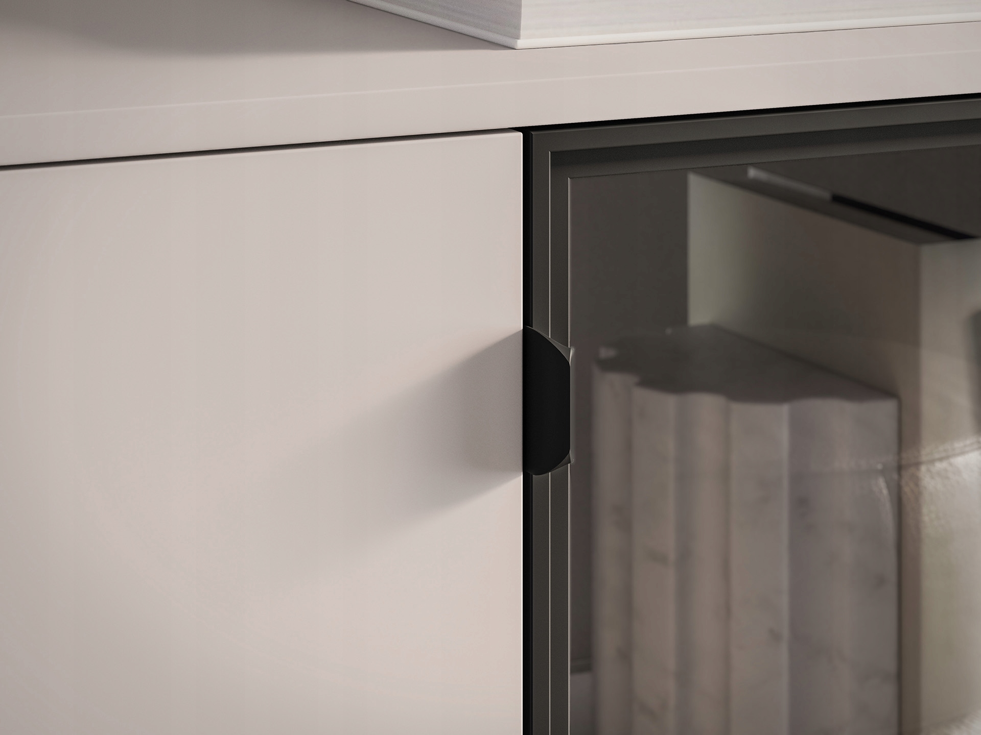 Komoda Barnee 03 to mebel, którego nowoczesnym design oraz funkcjonalność sprawdzi się w każdym współczesnym wnętrzu. Lewa strona mebla składa się z dwóch pojemnych, zamykanych wnęk, w których przechowasz odzież, obrusy lub inne domowe tekstylia. Przestrzeń po prawej stronie podzielona jest szklaną półką, tworzącą dwie szerokie wnęki. Dzięki drzwiom z hartowanego szkła wyeksponujesz ulubione przedmioty: stylową zastawę lub pamiątki z podróży. Oświetlenie za szybą dodatkowo podkreśli ich charakter oraz dyskretnie doświetli Twoje wnętrze dodając mu wyjątkowego uroku.