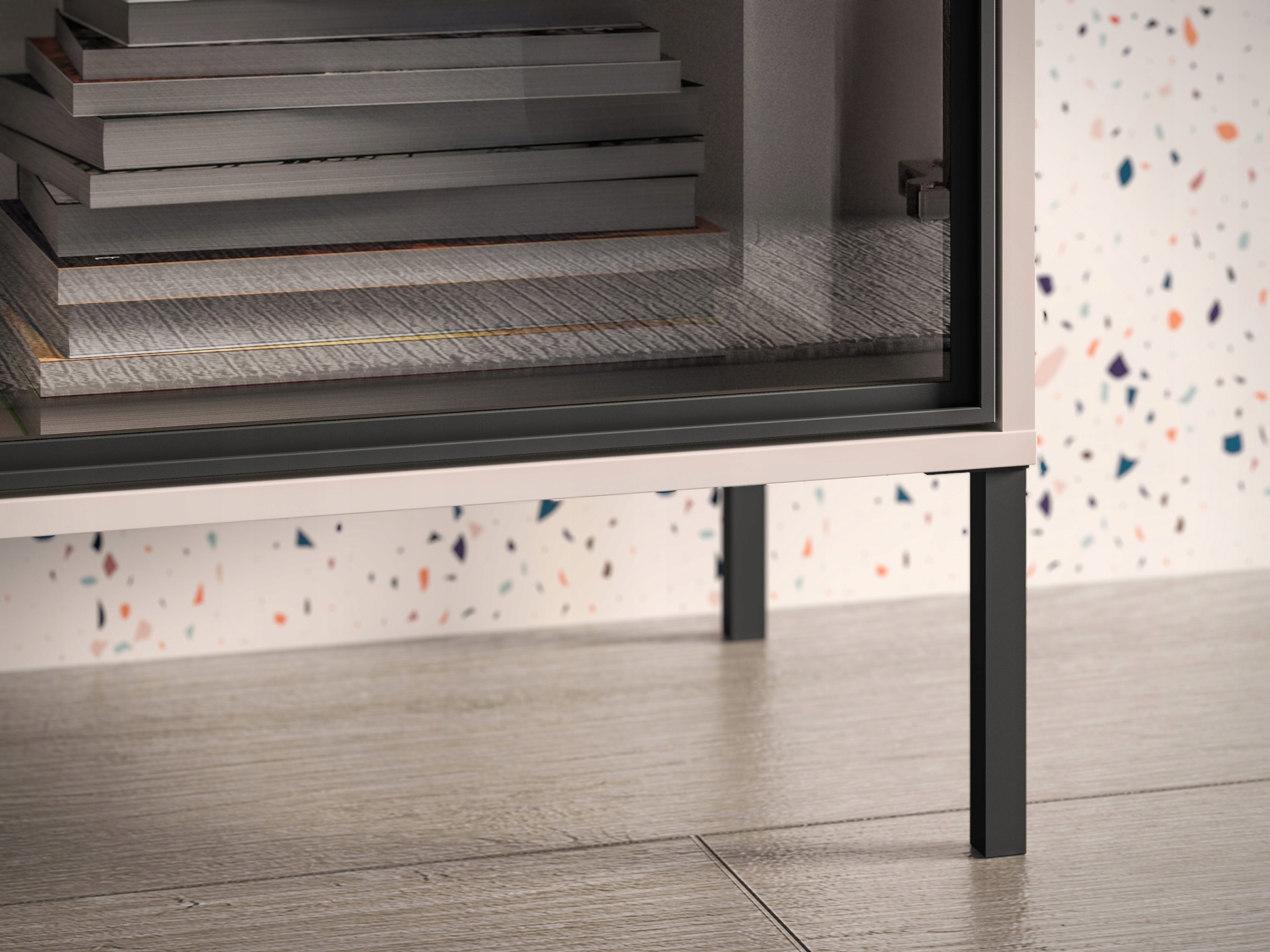 Czarne, metalowe nogi, ułatwiające sprzątanie.
