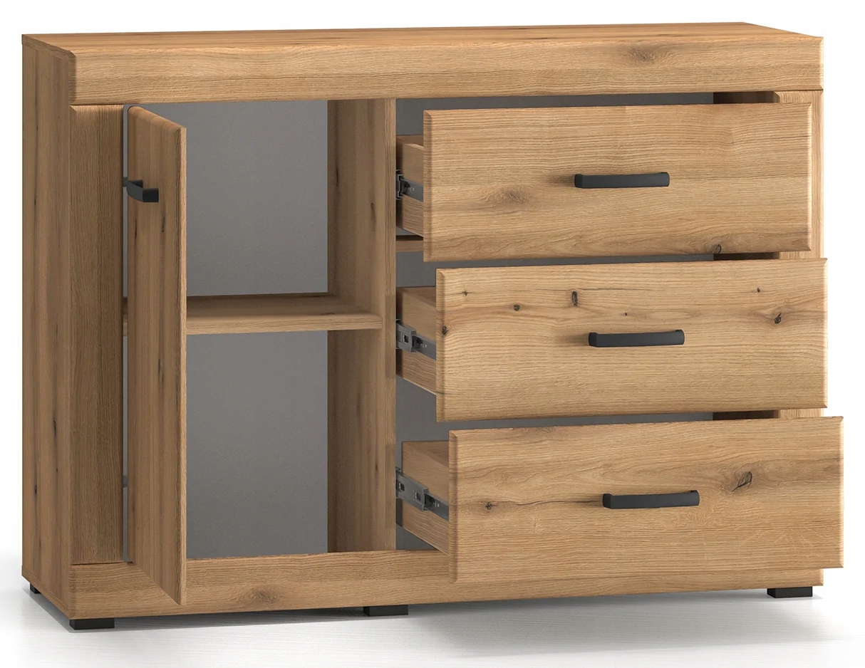 Komoda DORA 05, 3 Szuflady + Szafka, Dąb Evoke / ML Meble 116cm