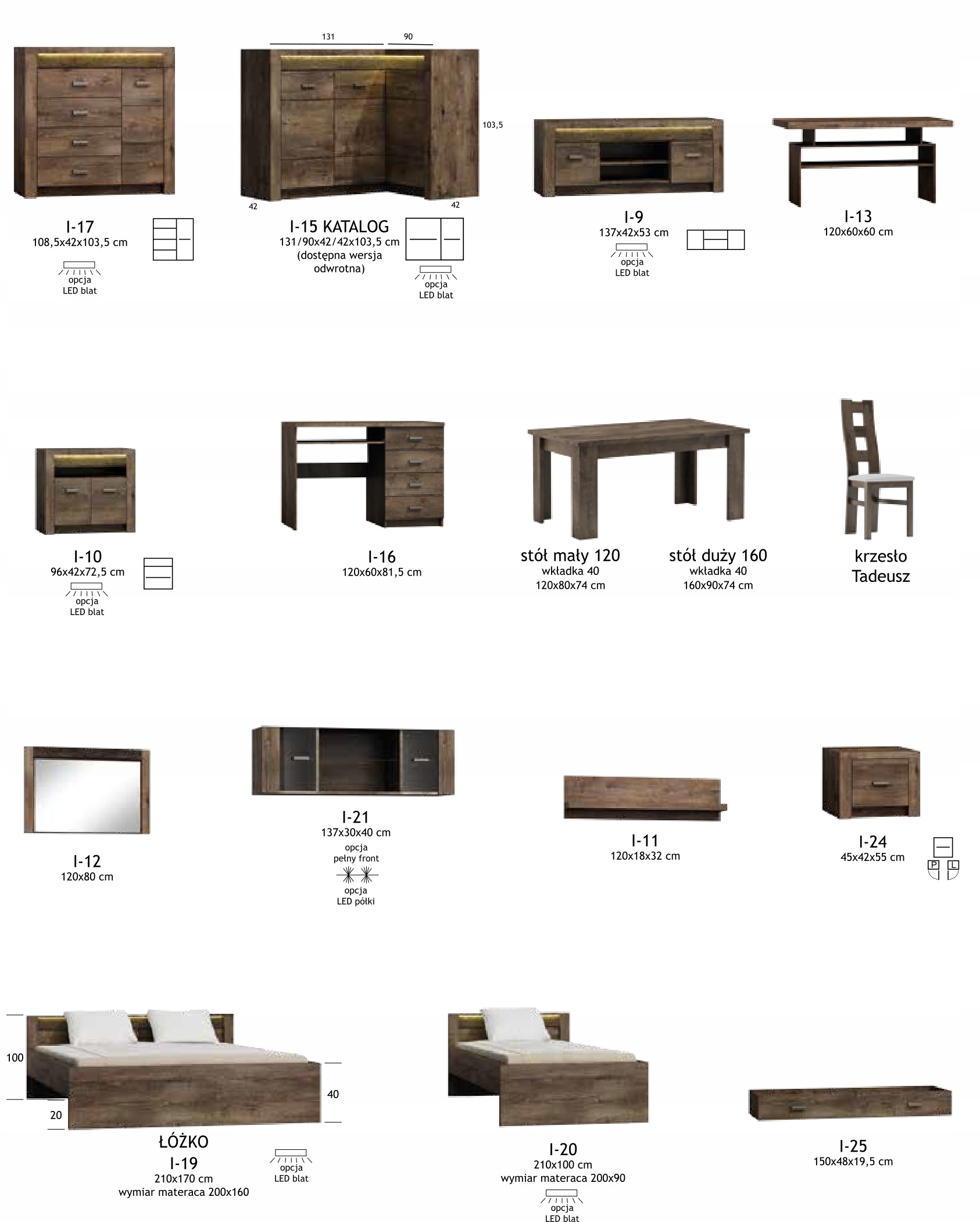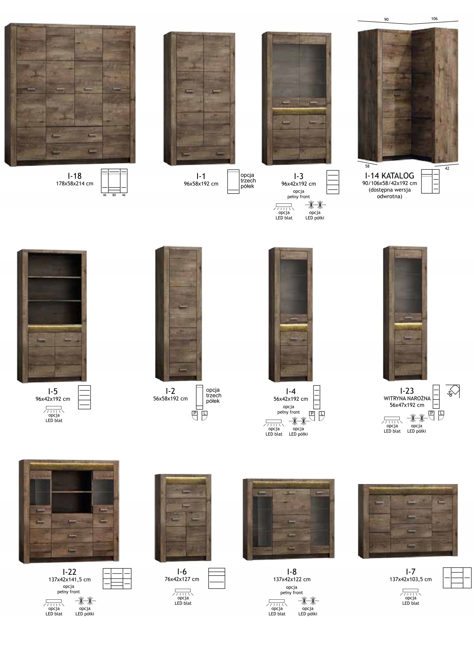 Zaletą systemu INDIANAPOLIS jest fakt posiadania sporej liczby elementów, wchodzącej w jego skład. Sprawia on, że możemy świetnie zaprojektować wnętrze naszego salonu, sypialni a także biura lub gabinetu. Specjalnie dobrana tekstura i kolorystyka oraz połączenie surowości drewna i grubości blatów, podkreśla optycznie solidność budowy mebla. Wysoka dbałość o najmniejsze szczegóły i niepowtarzalne, oryginalne wykończenie, z pewnością zadowoli najbardziej wymagających Klientów.