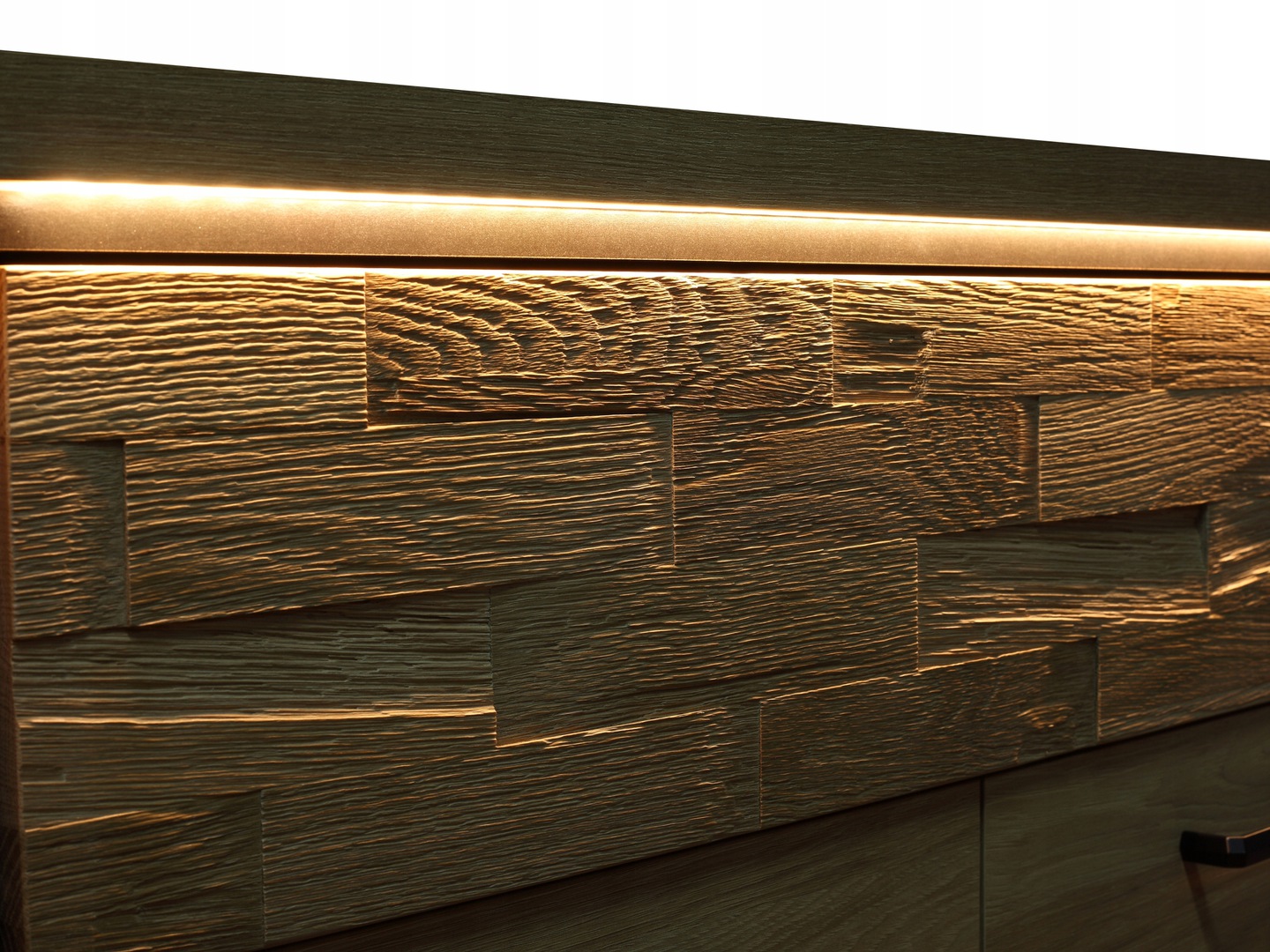 Elegancka wstawka imitująca deskę dębową wykonana z płyty laminowanej o grubości 19 mm.