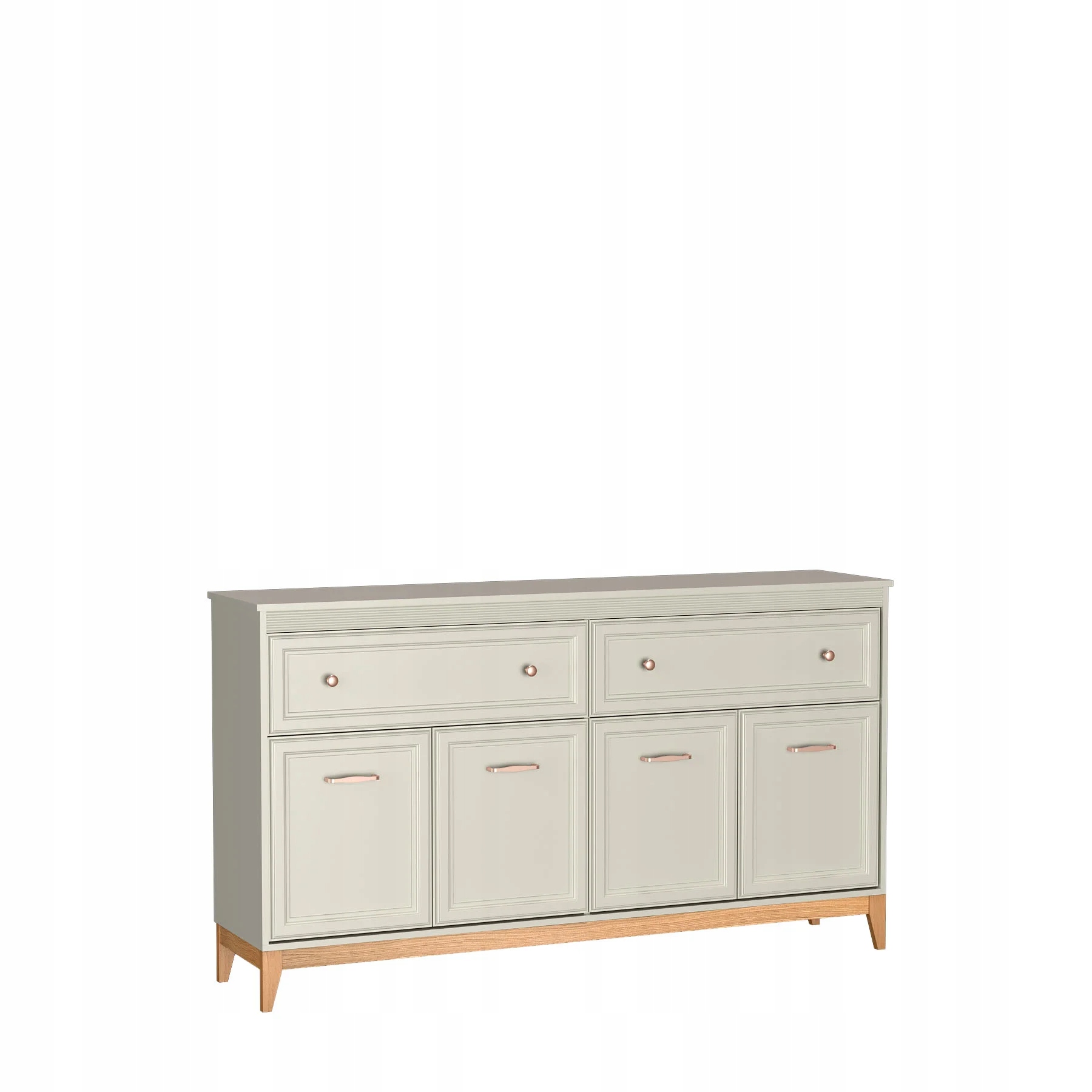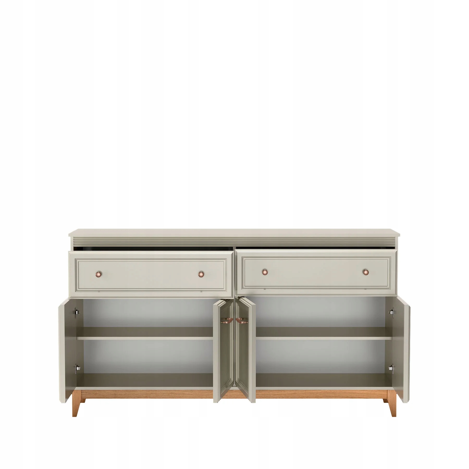 Komoda Windsor 02 posiada 4 drzwi w dolnej części oraz 2 szuflady powyżej.