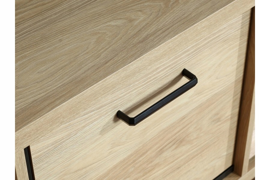 - Fronty zdobione są czarną ramką z mdf. Połączenie jasnego koloru drewna z czarnymi wstawkami daje industrialne, loftowe połączenie.