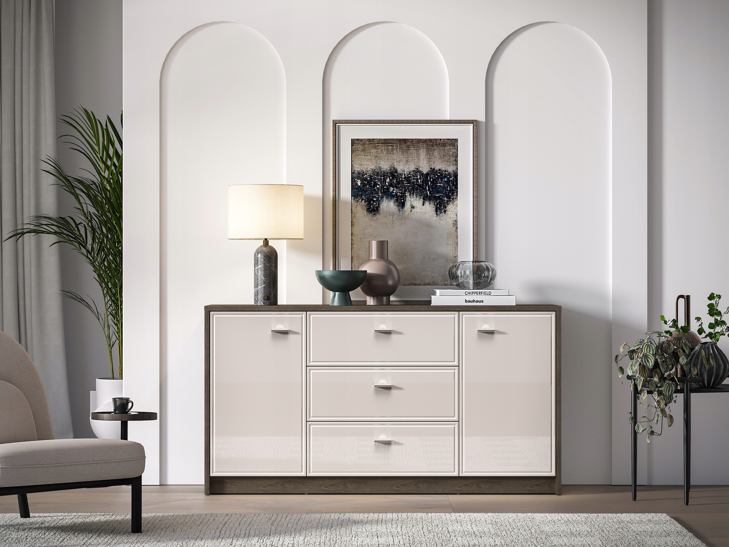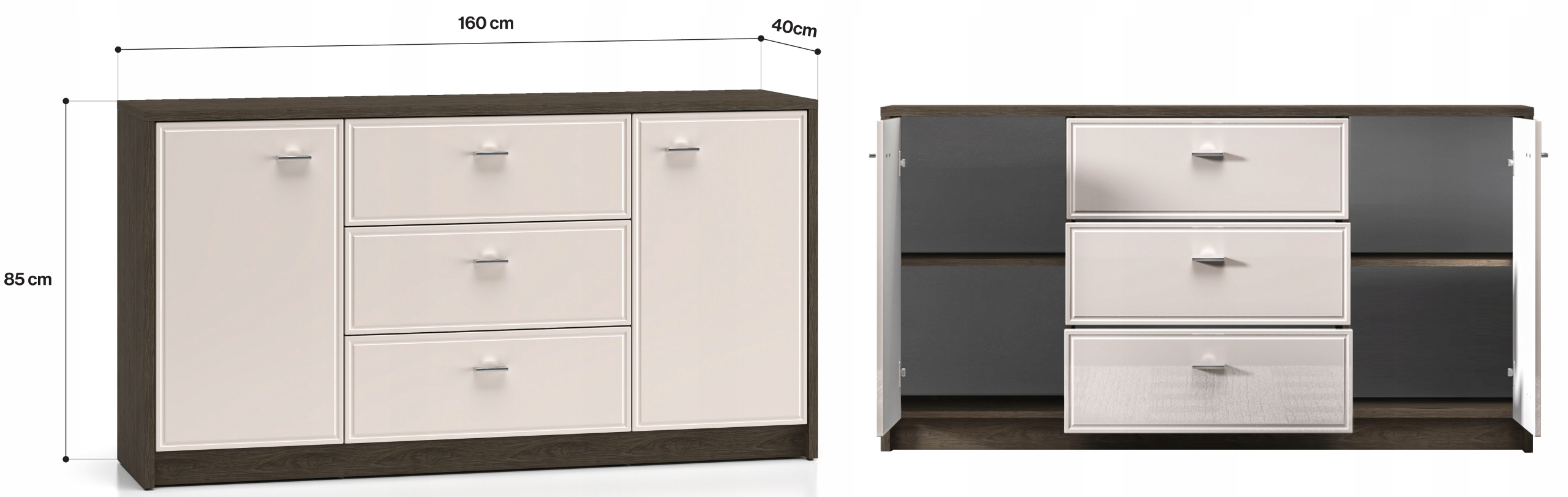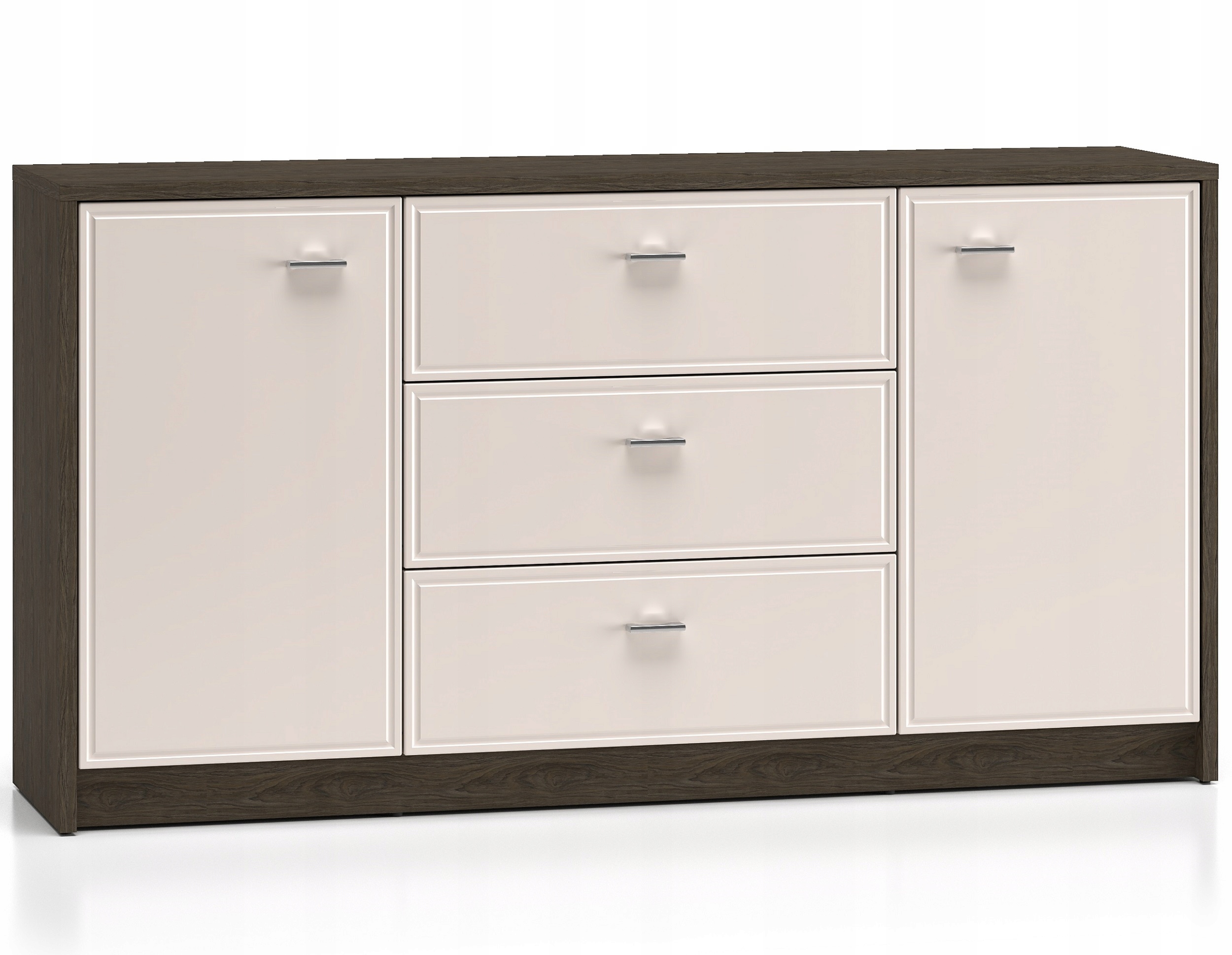 To idealny mebel do przechowywania. Za obojgiem drzwi kryją się łącznie cztery pojemne wnęki. Przechowasz w nich ubrania, ręczniki czy pościel. Środek mebla tworzą trzy głębokie szuflady, które zapewnią odpowiednią ilość miejsca na dokumenty, obrusy lub inne domowe tekstylia. Komoda będzie świetnym dopełnieniem Twojego salonu lub sypialni. Szeroki blat będzie idealnym miejscem do wyeksponowania eleganckich wazonów, pamiątek z podróży lub innych ulubionych gadżetów. Wybierz komodę Avante i zachowaj porządek w swoim wnętrzu.