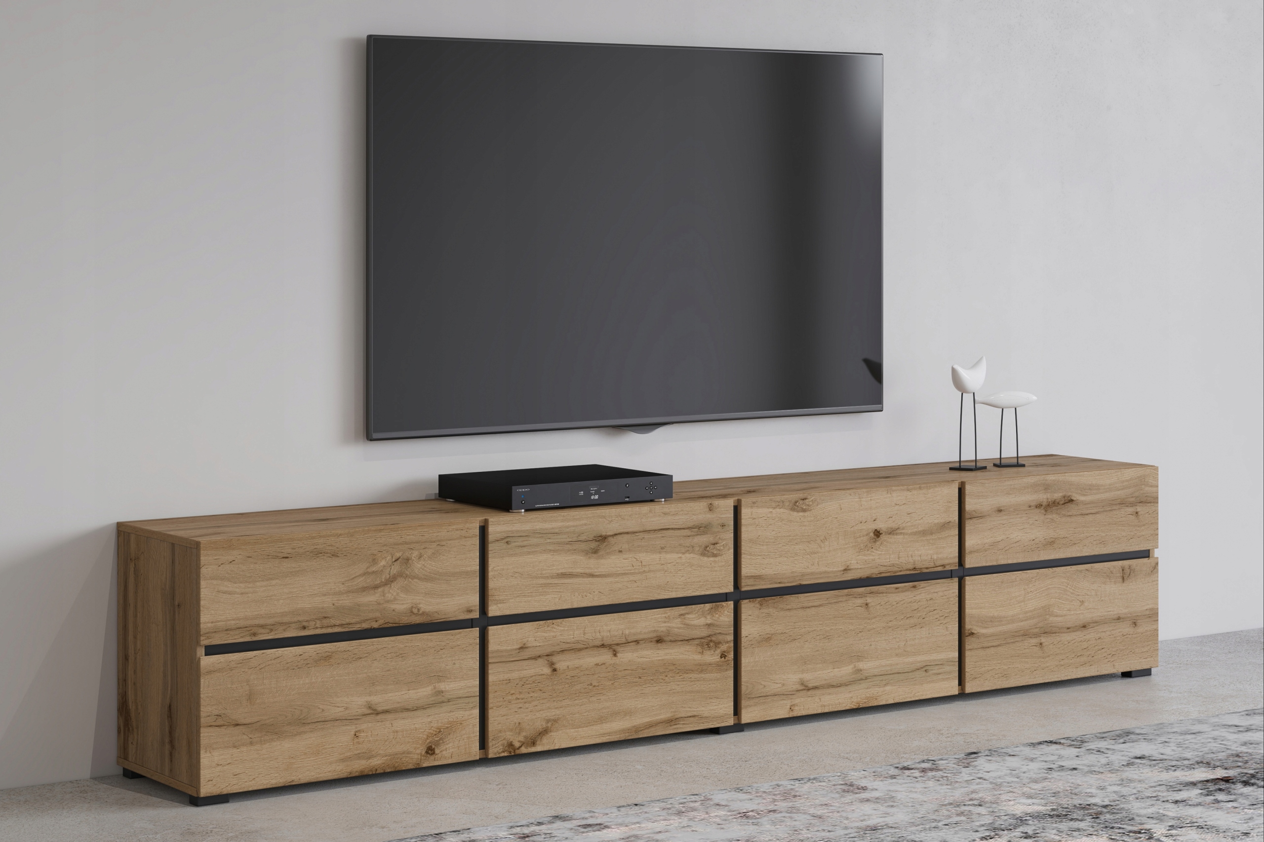 Komoda pod telewizor stolik szafka RTV CROSS dąb wotan 225cm duża Modern