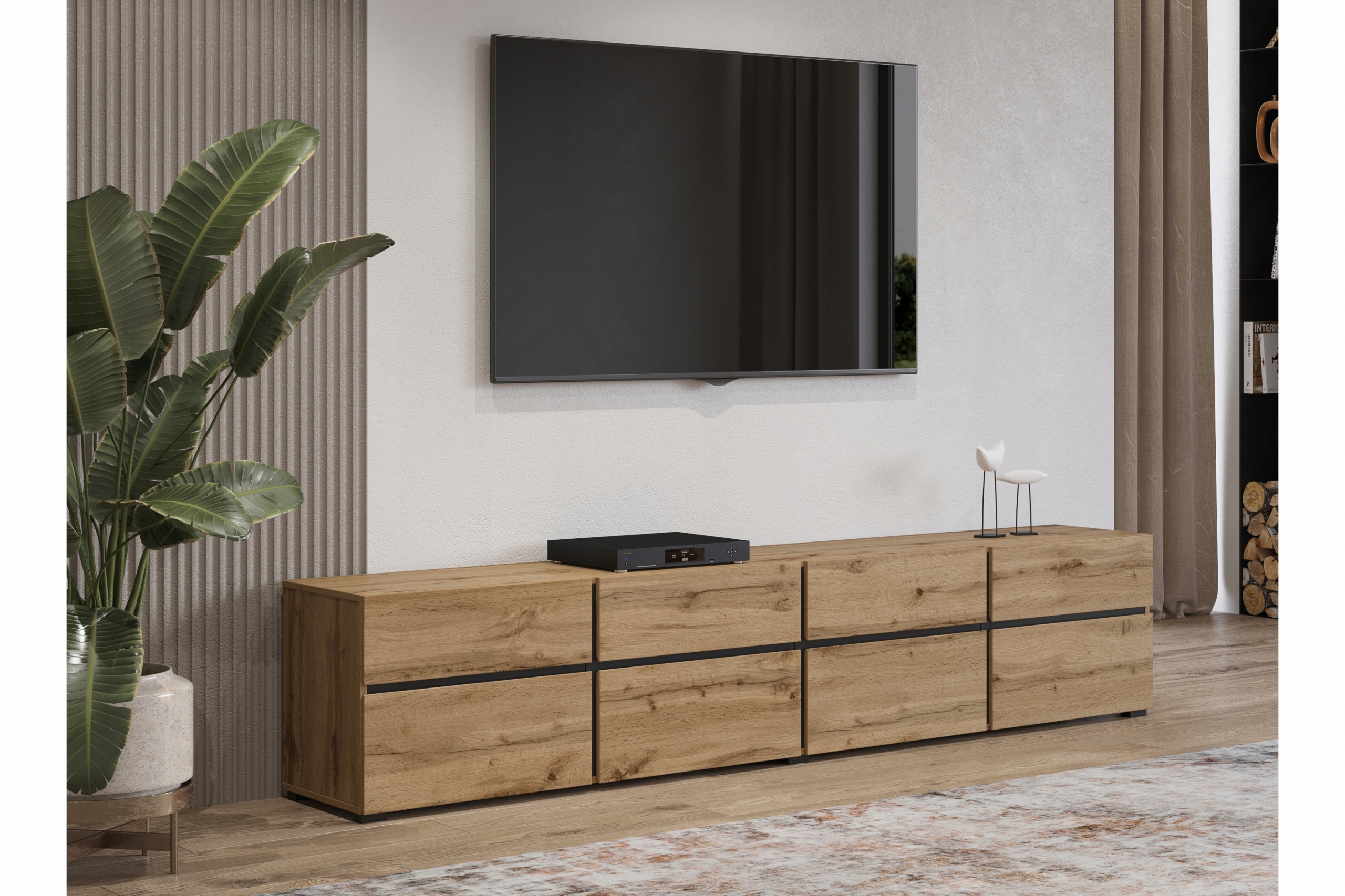 Szafka RTV Cross 40 z szufladami 225 cm – dąb wotan / czarny