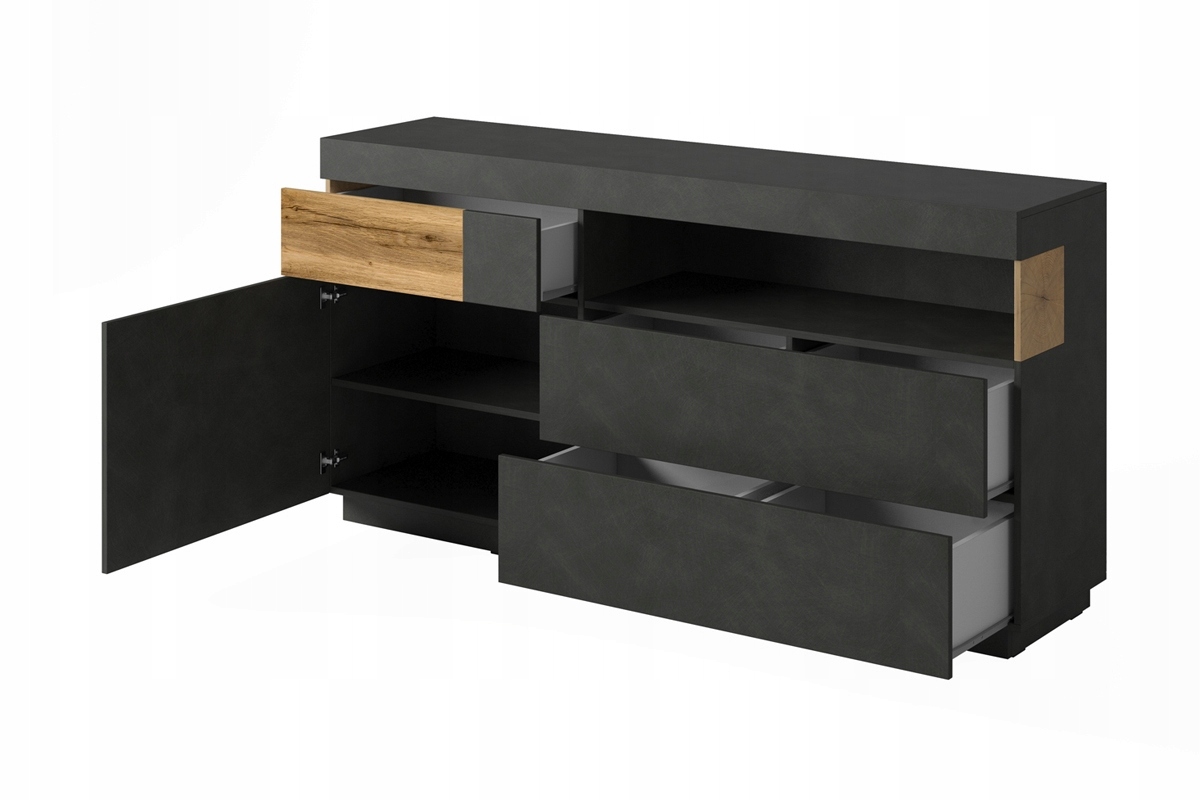 Komoda SILKE 169 x 40 x 85cm duża szara grafit ciemny beton nowoczesna