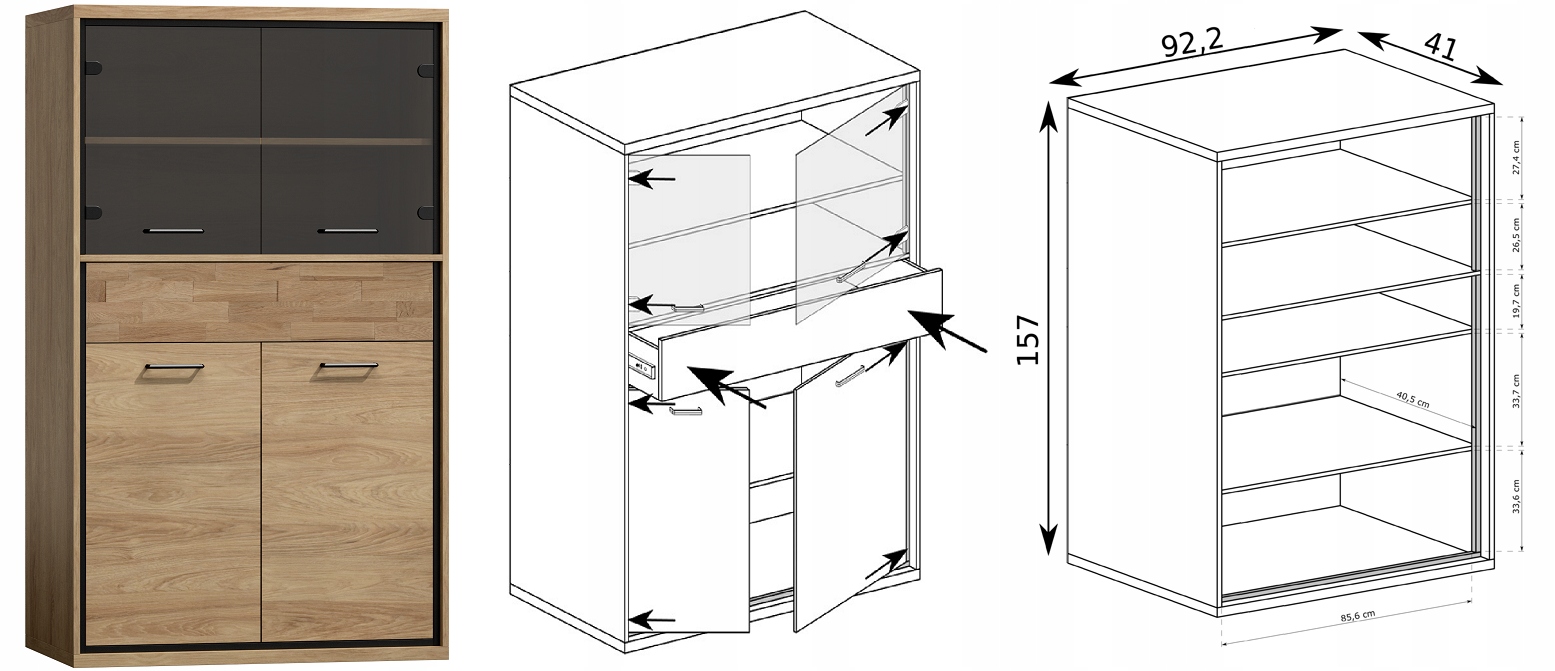 Komoda witryna Loftowa Dąb naturalny MEDIOLAN 92,2 x 41 x 157 soft close PL
