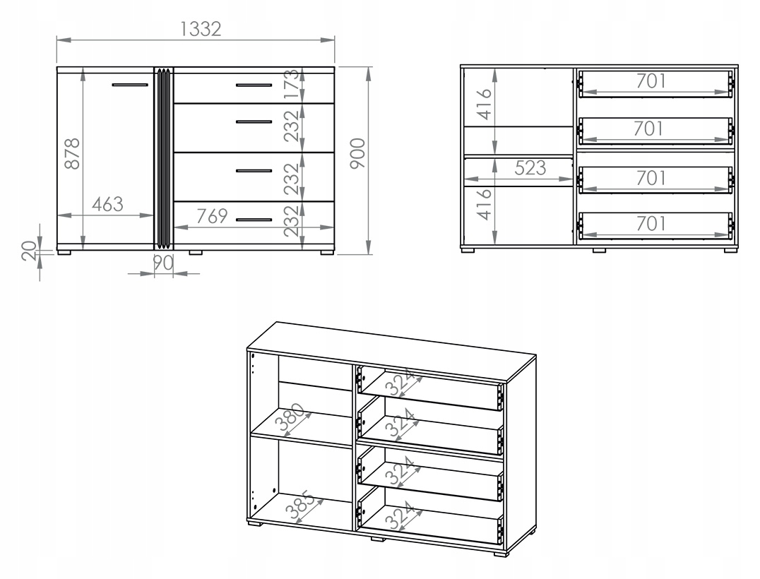 - zwiększona ładowność szuflady dzięki specjalnemu wzmocnieniu dna.