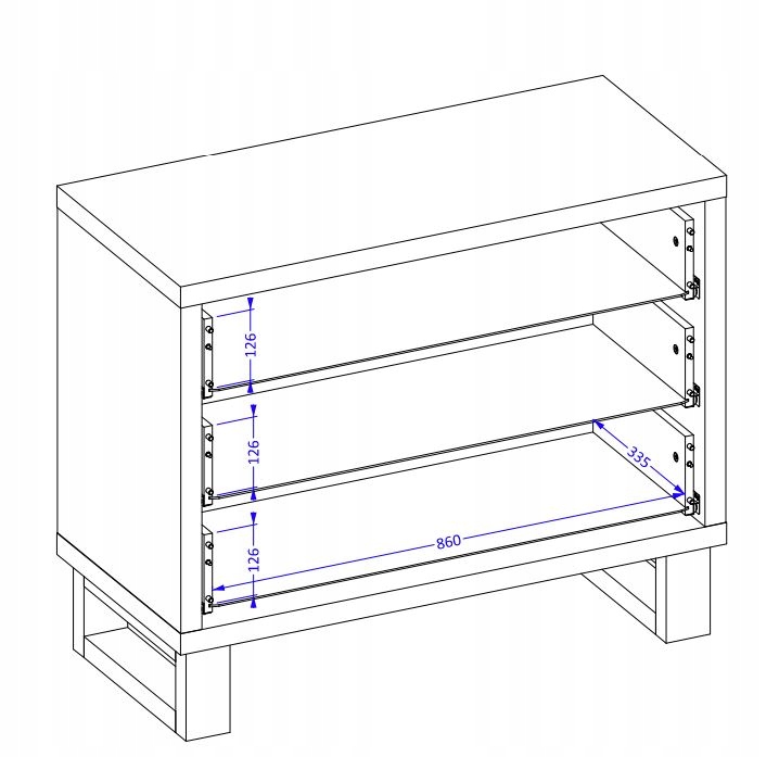 Pozornie masywna konstrukcja mebli została oparta na czarnych metalowych nogach, które idealnie komponują się z innymi industrialnymi akcentami aranżacji, jak np. lampy na trójnogach, metalowe krzesła czy narożniki w stylu LOFT.