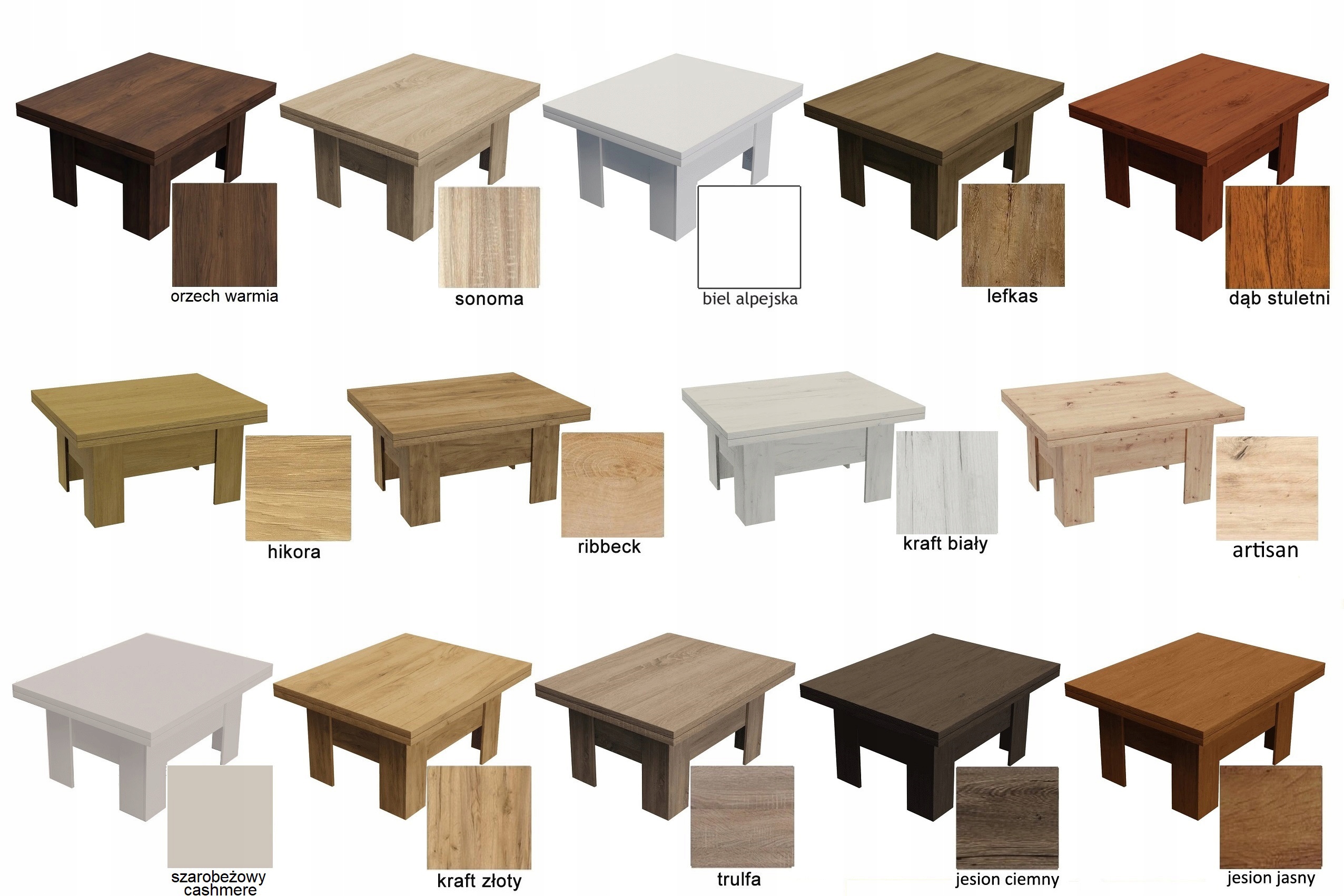 | Kolor mebla | Dąb brązowy, dąb orzech, odcienie brązu, orzech |