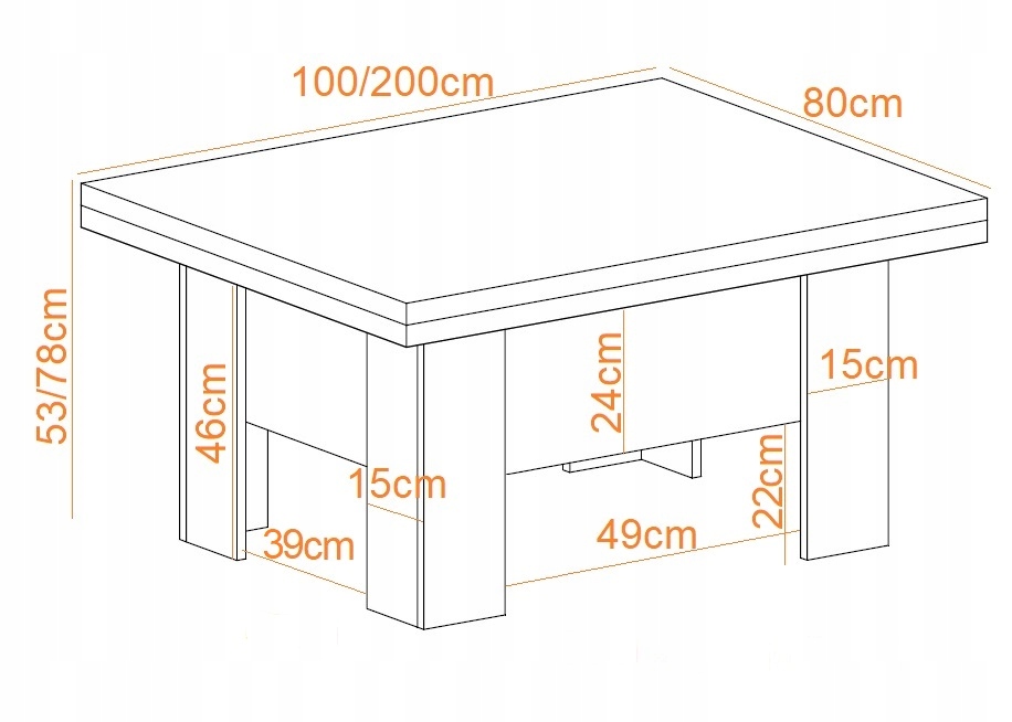 100x53x80 po rozłożeniu 200×80 do 78cm wysokości.