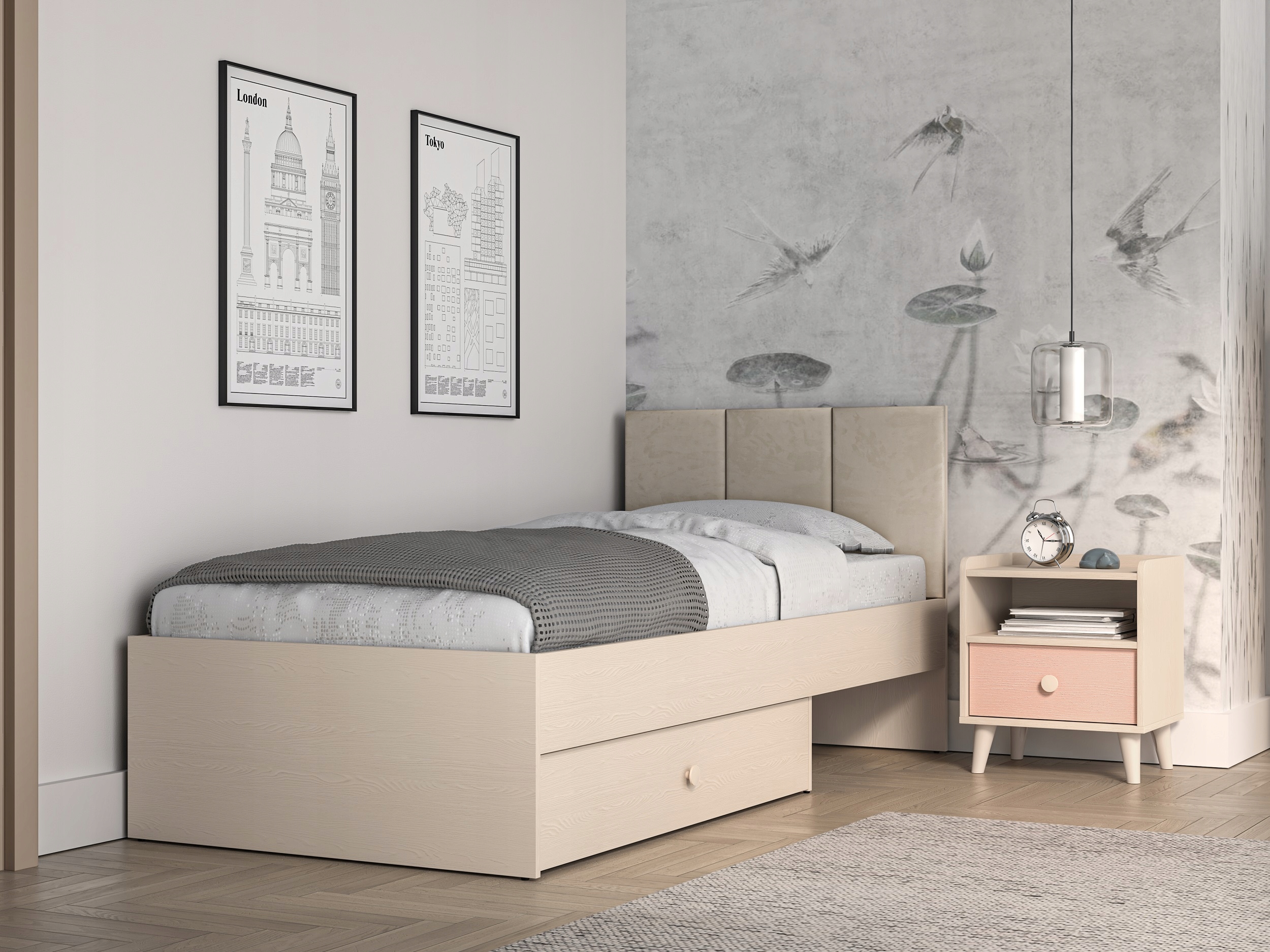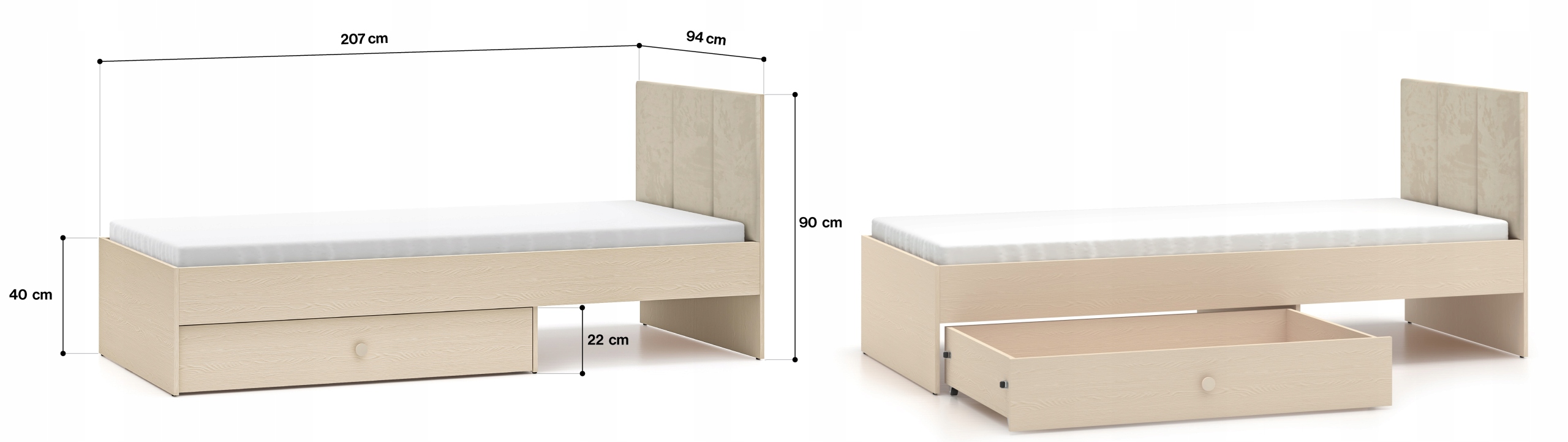 Łóżko 90×200 Mevel 08 Piasek Pustyni ML Meble z pojemnikiem + stelaż