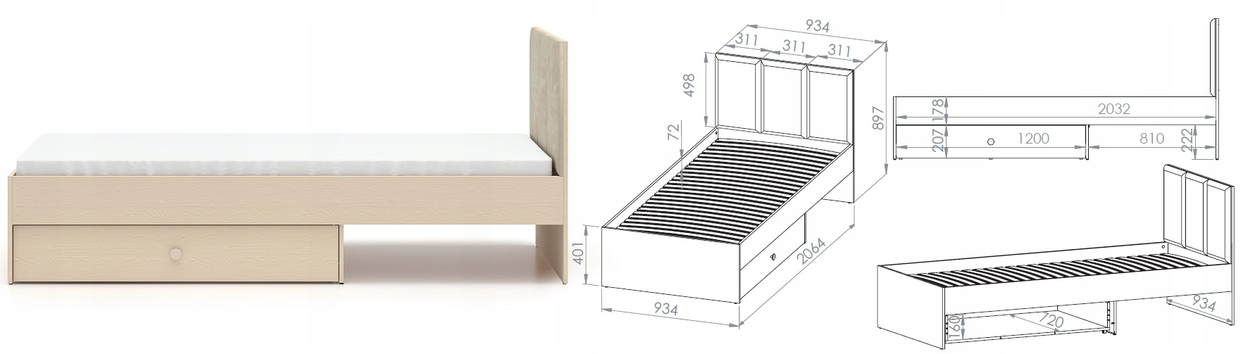 • powierzchnia spania 90×200