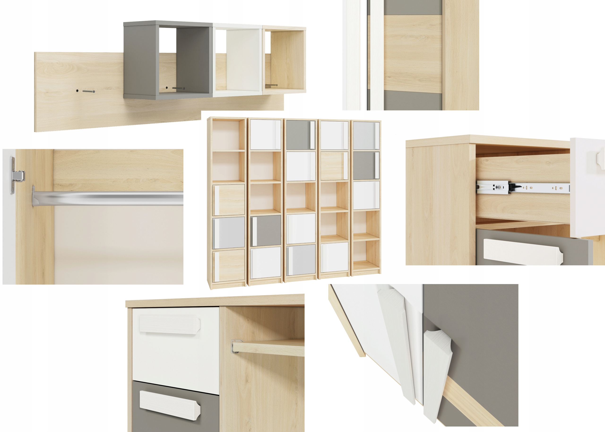 - buk fjord + biały + szary platyna
