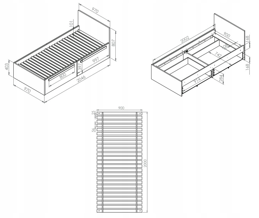 Pasujący materac: 90 x 200