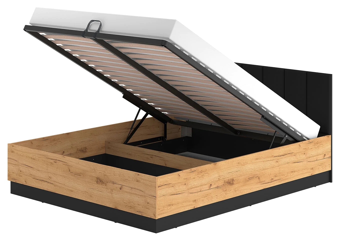 Łóżko podwójne dąb craft z pojemnikiem ML Meble 160×200 + stelaż