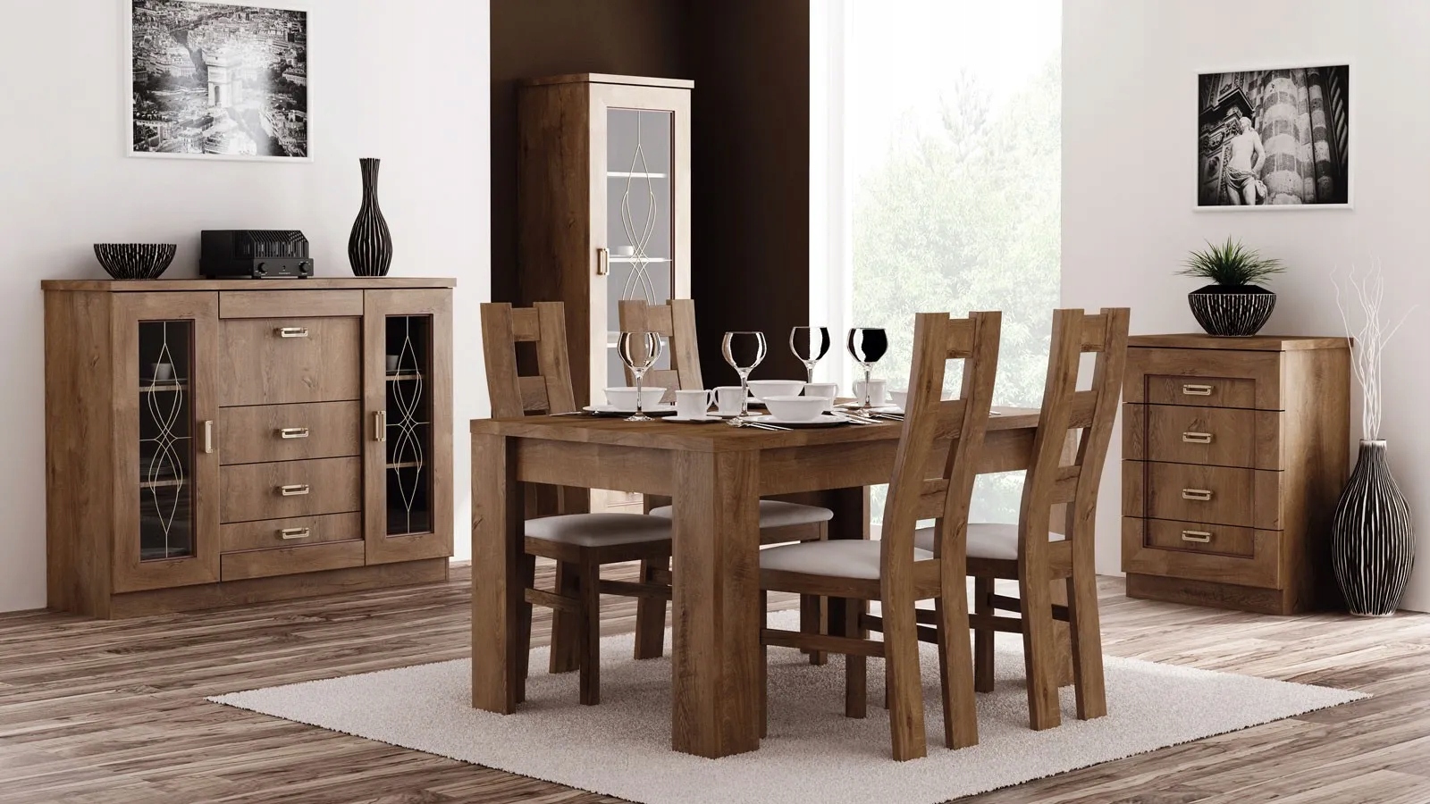 Meble te to połączenie stylu klasycznego z nowoczesnymi elementami, co tworzy niepowtarzalną całość. Kolekcja utrzymana jest w angielskim klimacie – przeszklenia z ozdobnymi ornamentami nadadzą pomieszczeniu przytulnego charakteru. Dzięki bryłom z serii TADEUSZ stworzymy elegancki salon lub sypialnię.