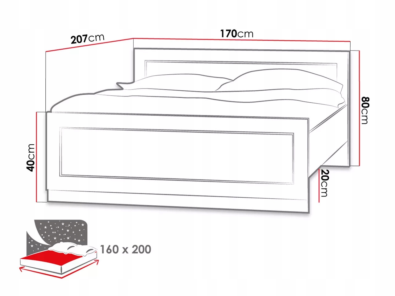| Powierzchnia spania | 160×200 |