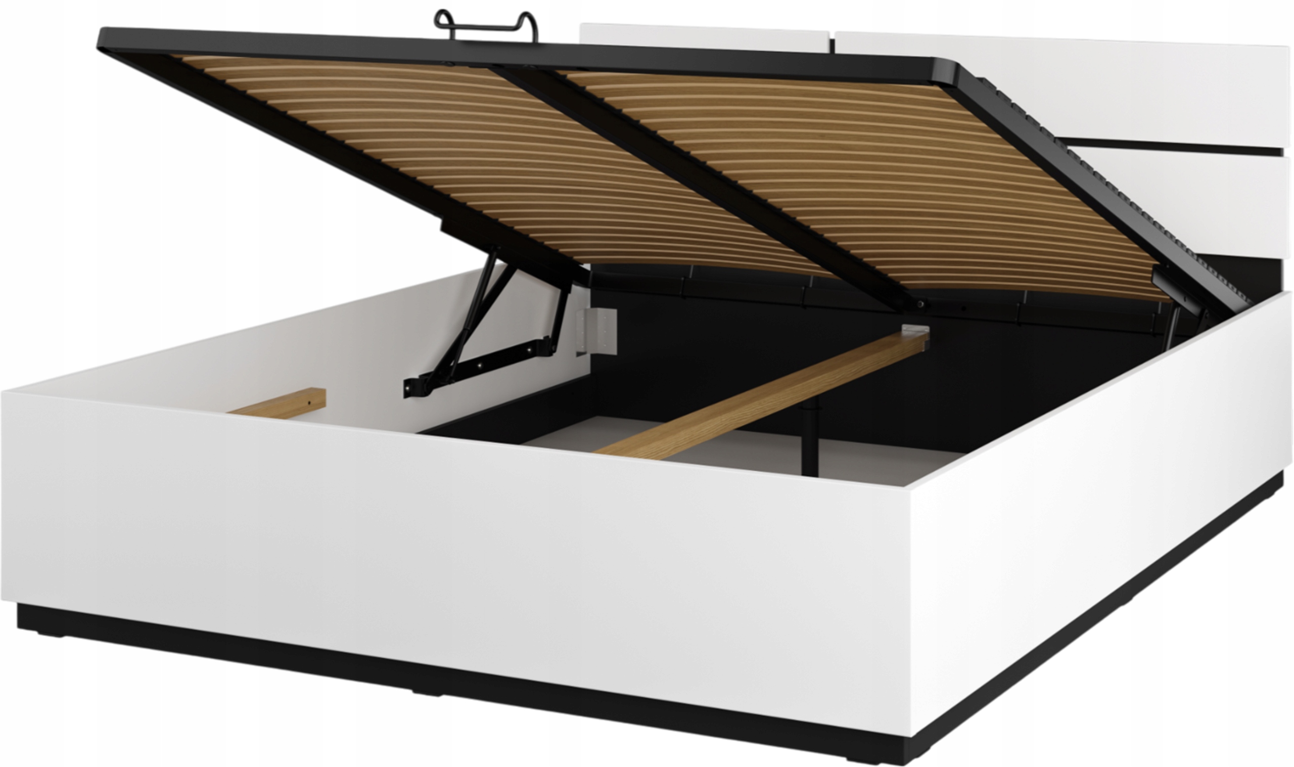 Łóżko podwójne z pojemnikiem nowoczesne podnoszony stelaż 160 białe CROSS