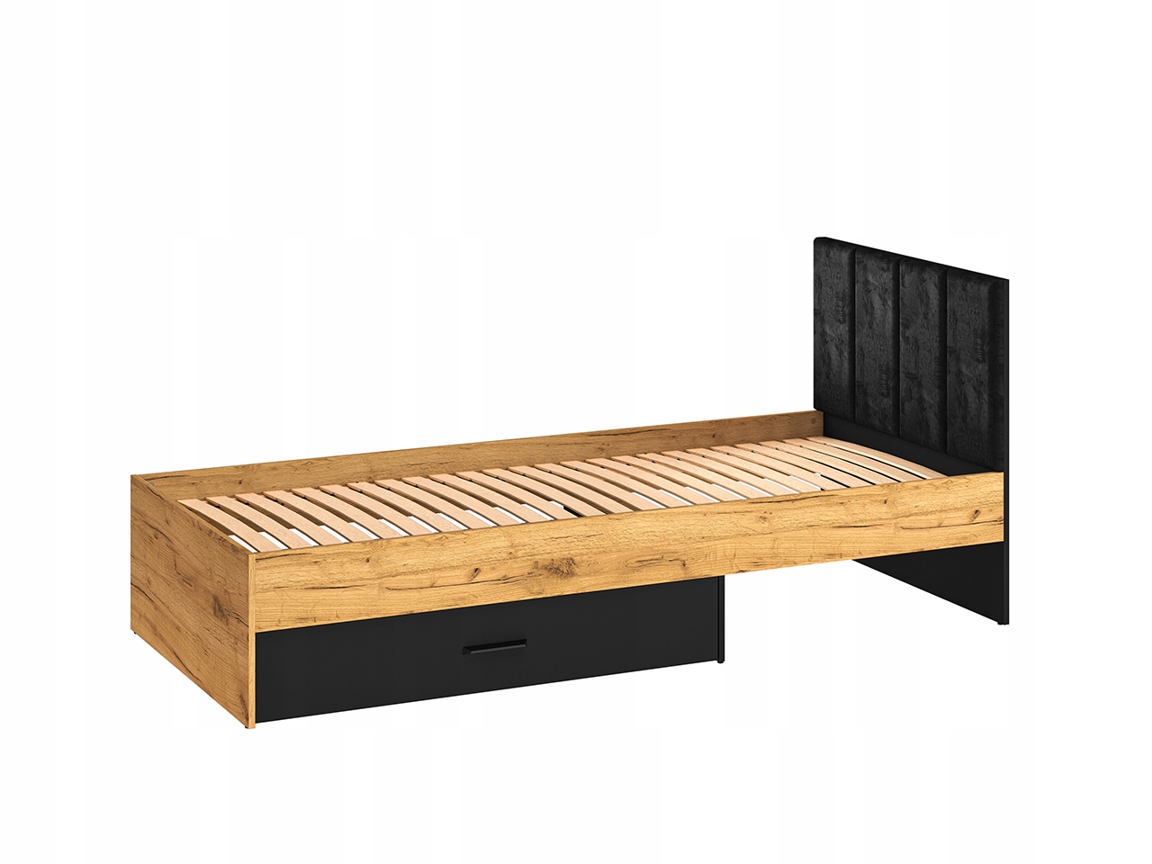Łóżko tradycyjne ML COLT 90 x 200 czarny tapicerowany zagłówek pojedyncze