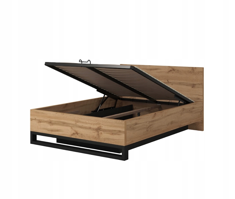 Łóżko z pojemnikiem HALLE LOFT Helvetia 140×200 dąb wotan czarne nogi