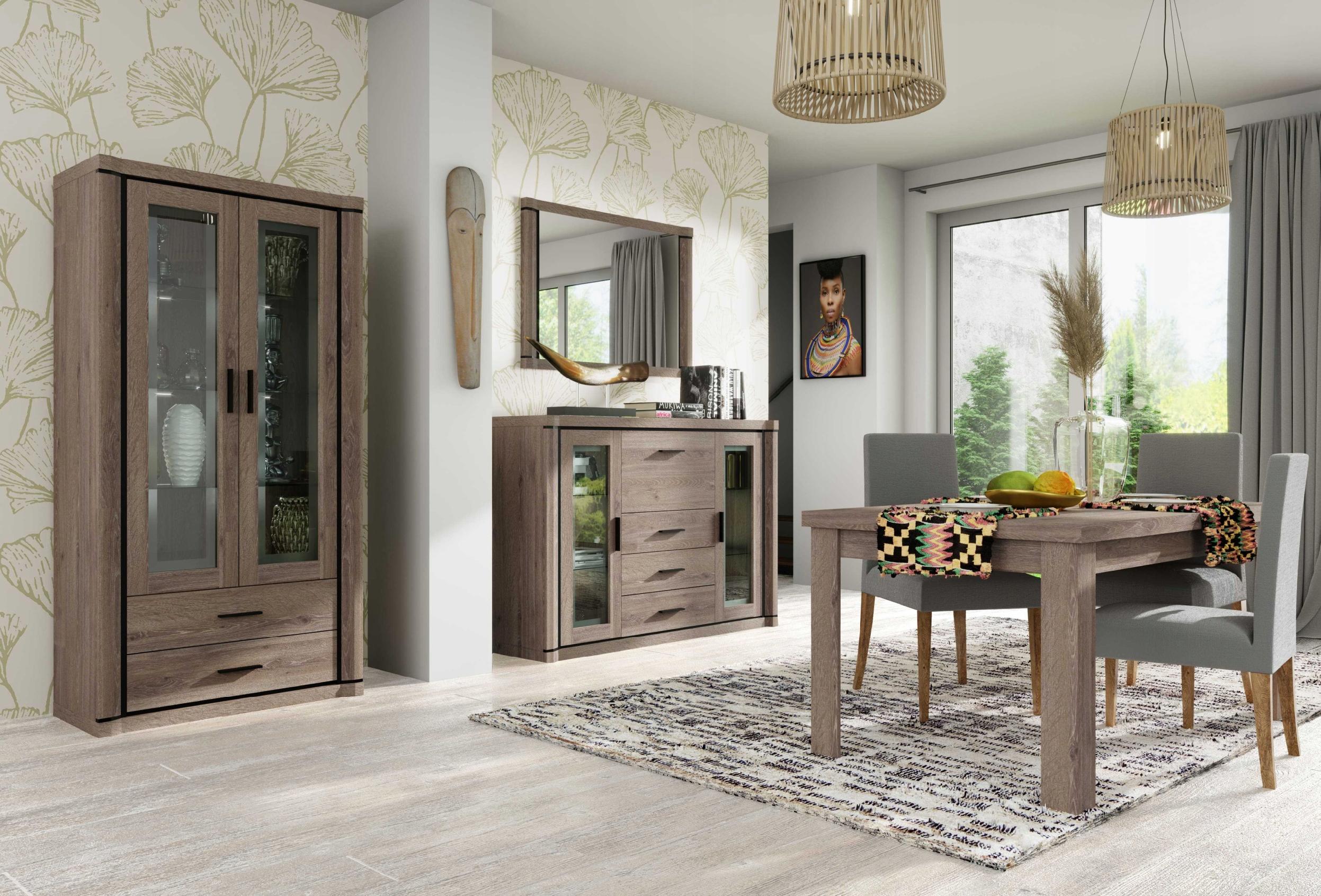 system składa się z : szaf, witryn, komód, szafek rtv, półek, ław, stołu